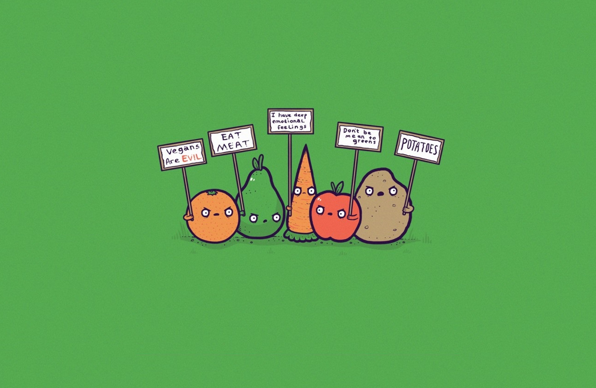 Овощи проводят митинг, зеленый фон - 2016x1313