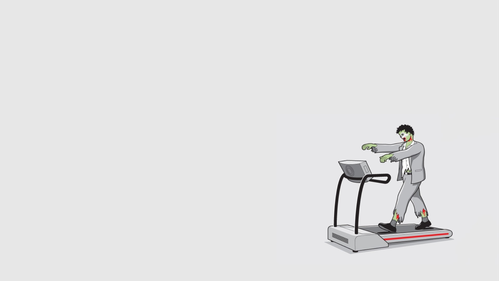 Зомби на беговой дорожке, серый фон - 1920x1080