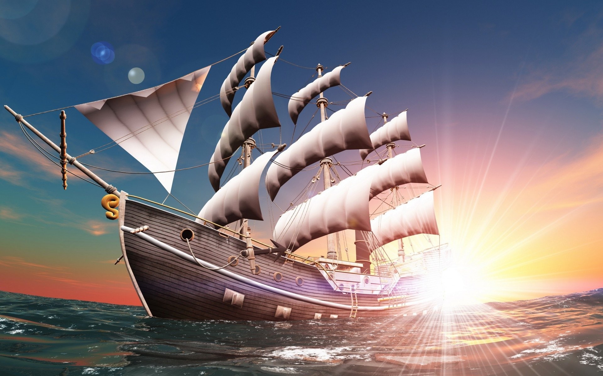 Парусник идет на встречу приключениям, мультфильм - 1920x1200