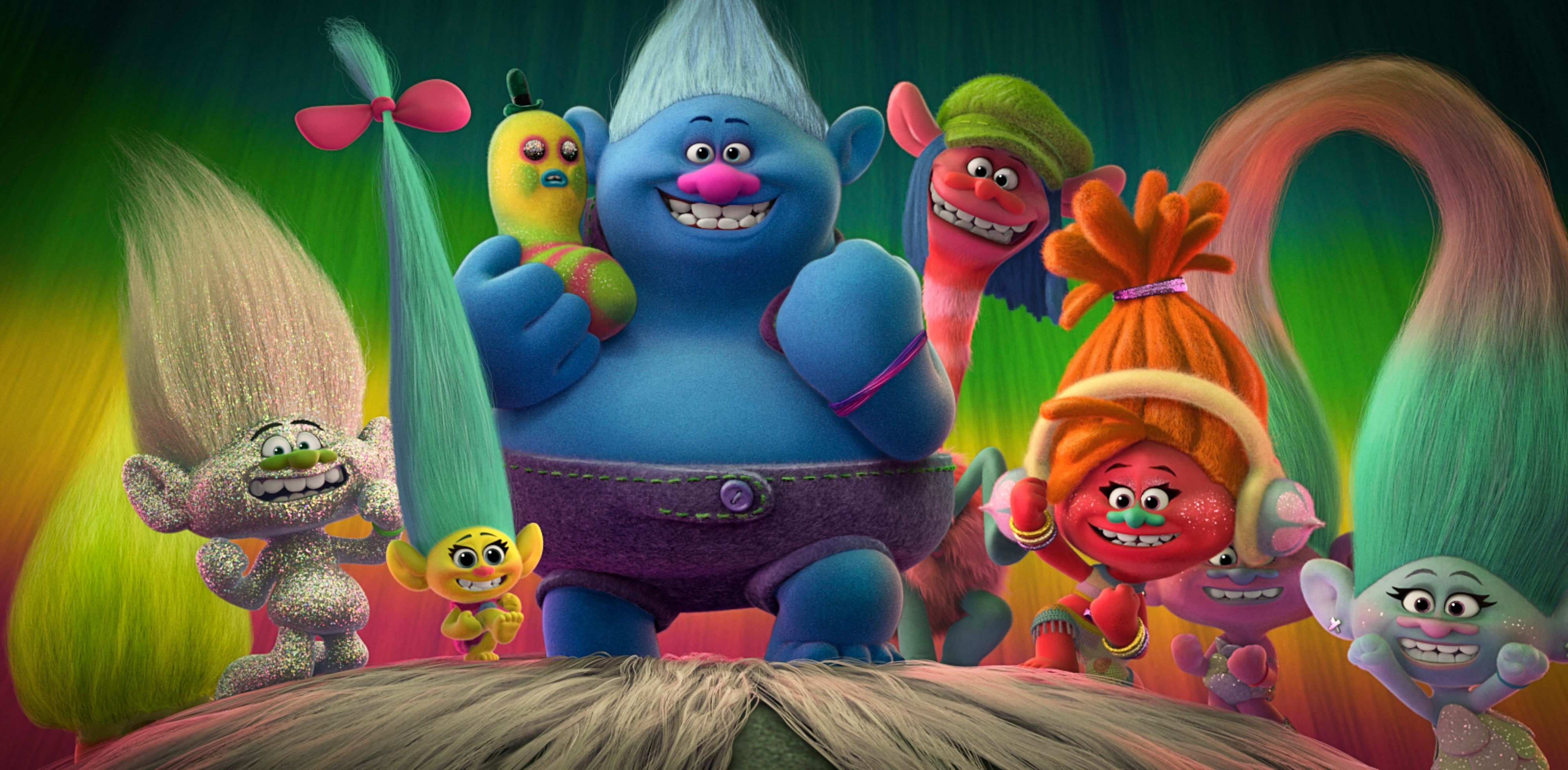 Веселые персонажи мультфильма Тролли: Мировой тур 2020 года - 4000x1964
