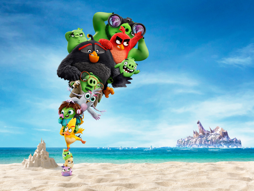 Персонажи мультфильма Angry Birds 2 в кино на песке Обои для рабочего стола 1024x768