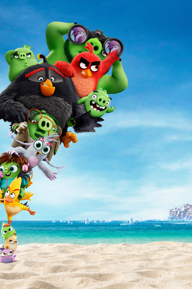 Персонажи мультфильма Angry Birds 2 в кино на песке Обои для рабочего стола 640x960