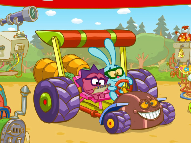 Обои: Гонки в мультфильме Смешарики