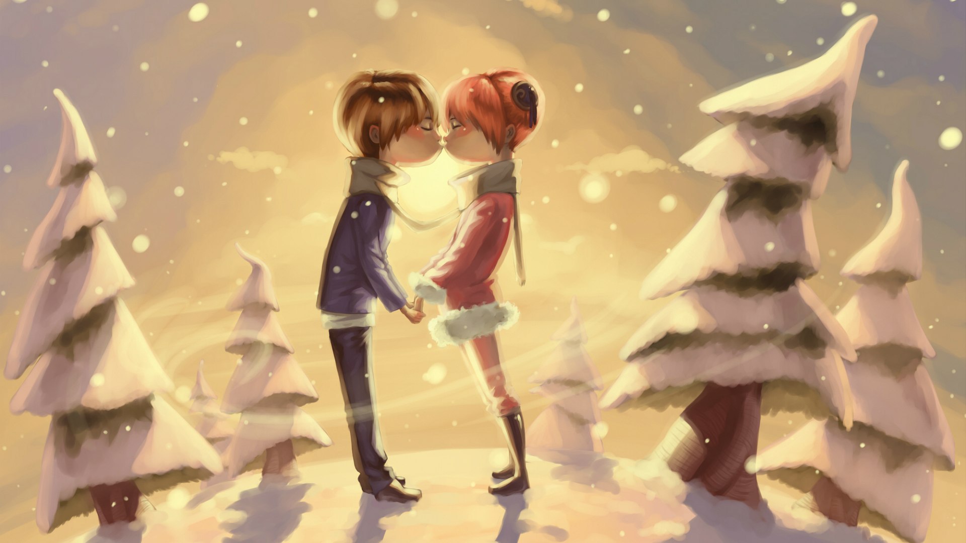 Мальчик и девочка в лесу - 1920x1080