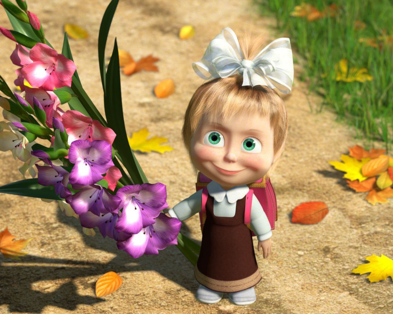 Маша с букетом цветов Обои для рабочего стола 1280x1024