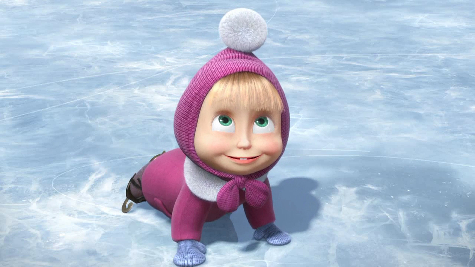 Обои: Маша катается на коньках, мультфильм Маша и медведь