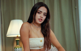Красивая девушка актриса Эйса Гонсалес в красной комнате