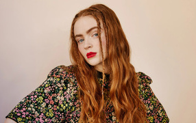 Размытое изображение Сидни Суини на фоне красной стены