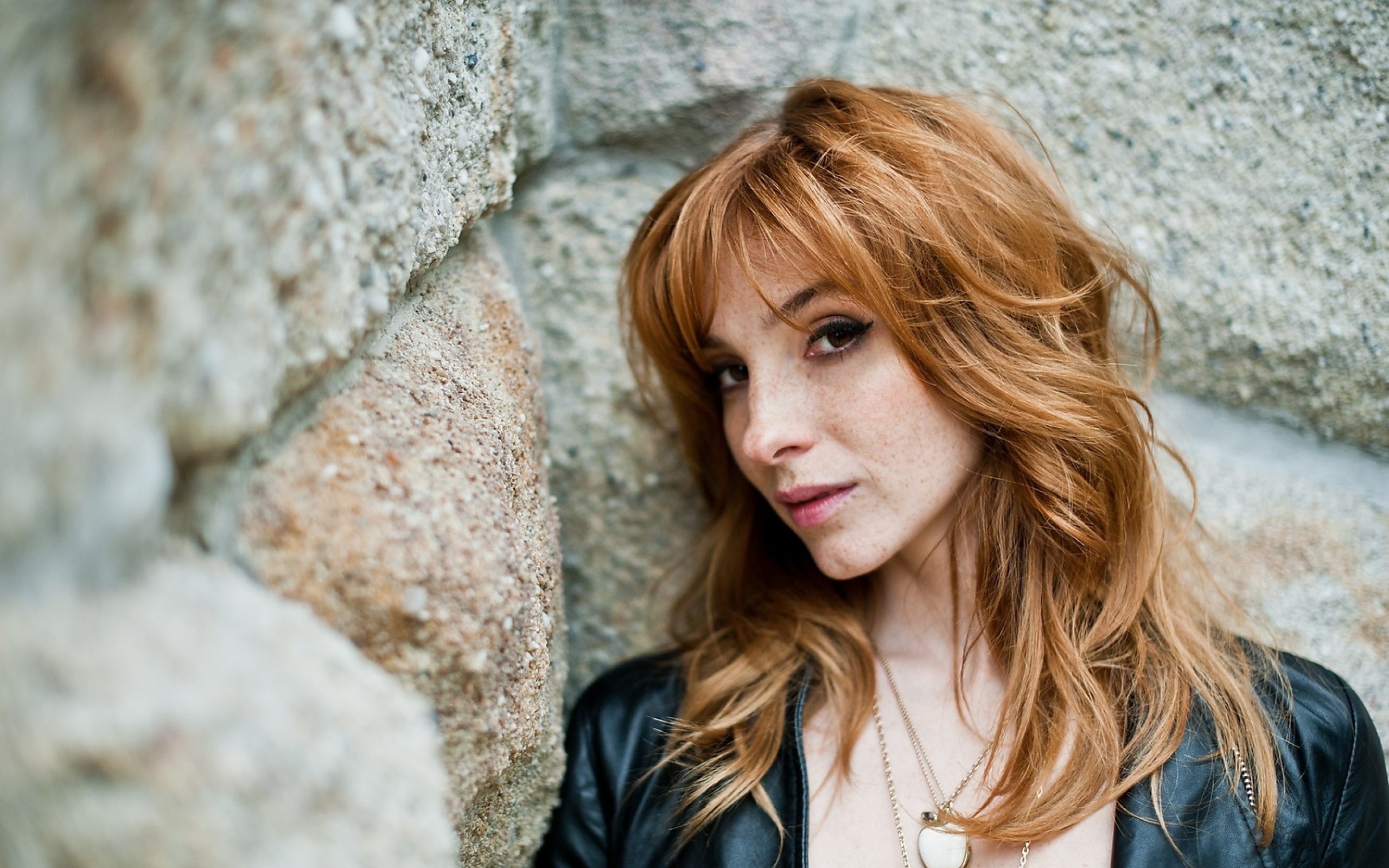 Девушка Вика Керекеш у каменной стены - 2560x1600