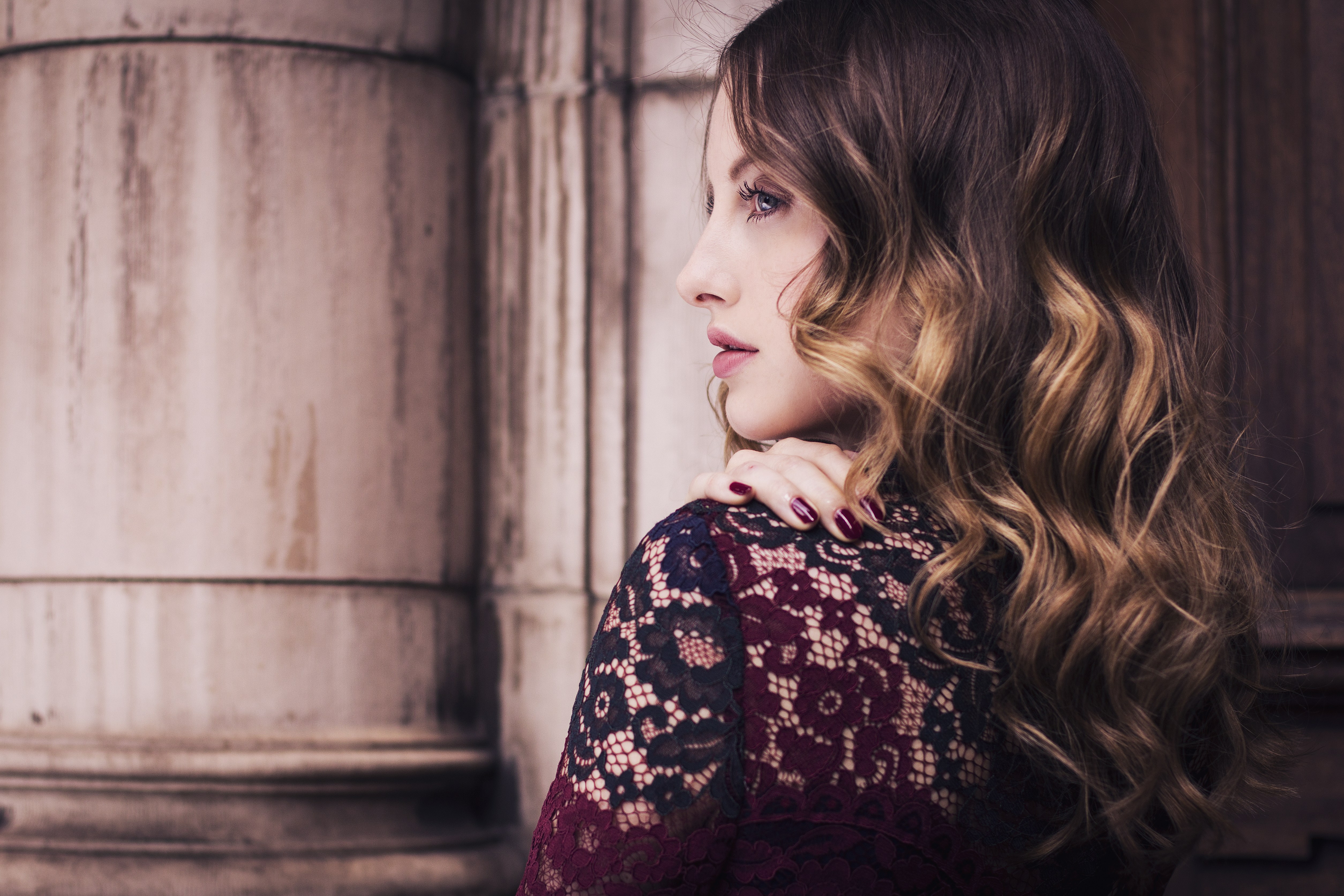 Актриса Ребекка Фергюсон розжимает цепь на белом фоне