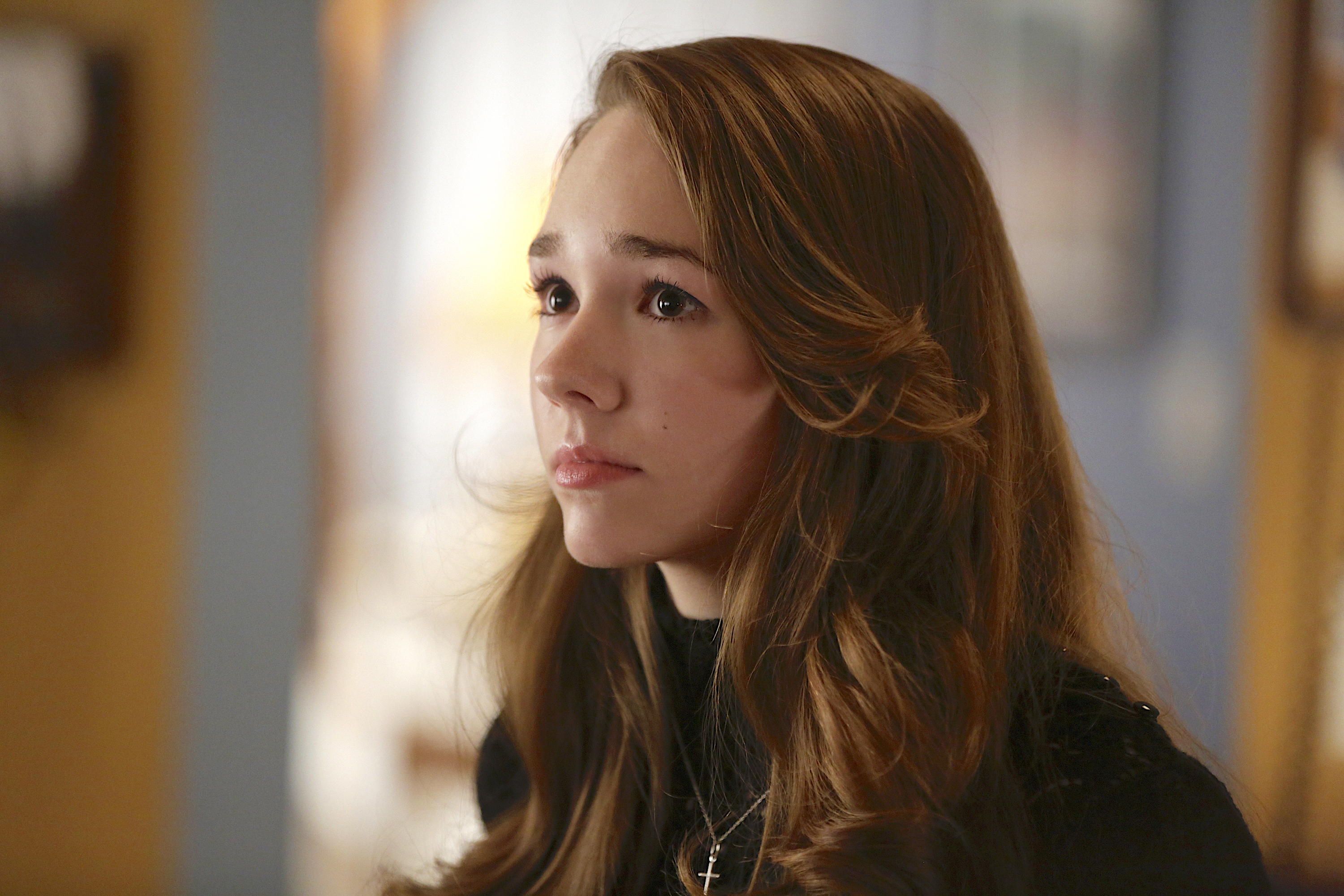 Актриса Ребекка Фергюсон розжимает цепь на белом фоне