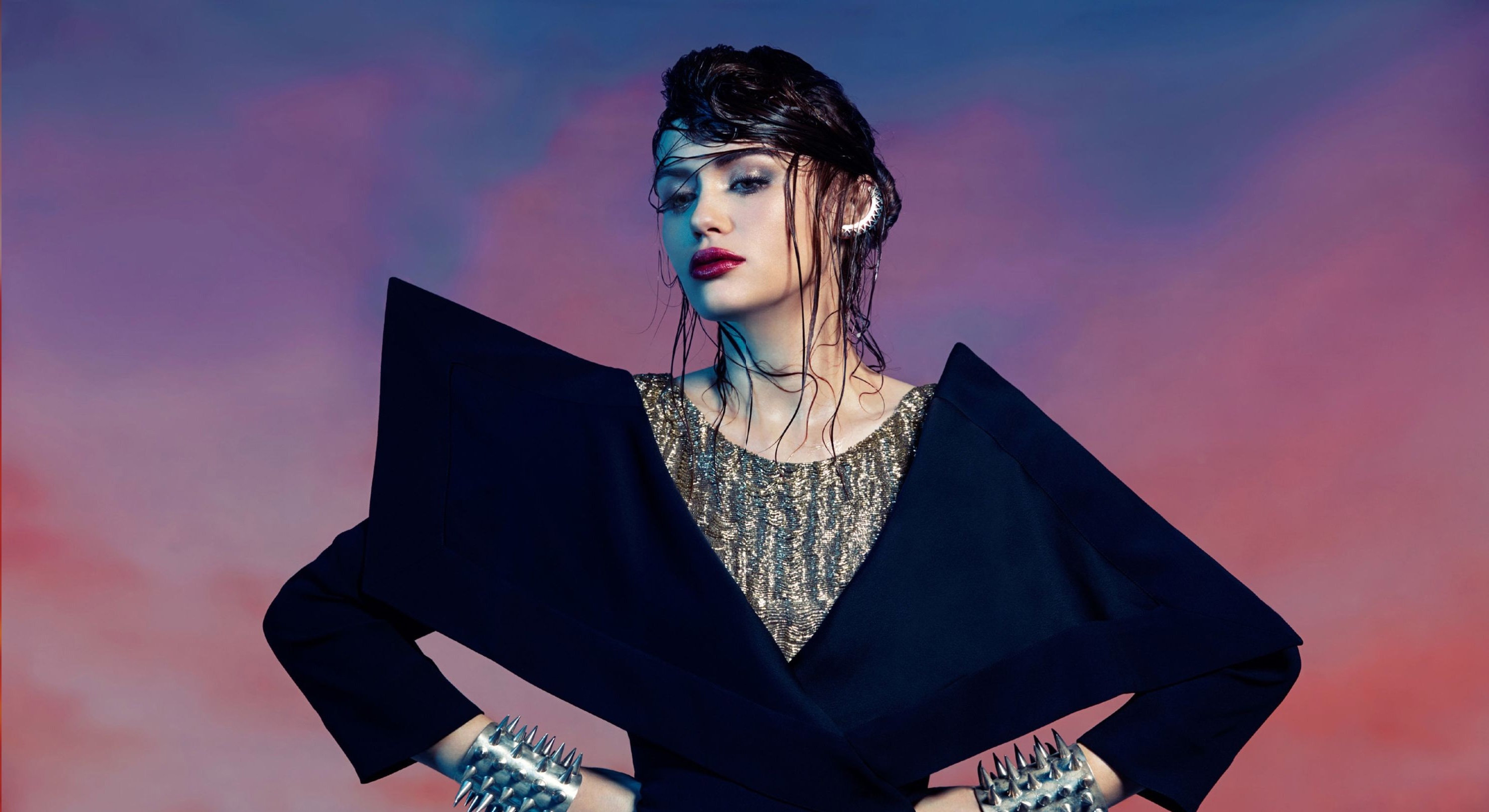 Актриса Ребекка Фергюсон розжимает цепь на белом фоне