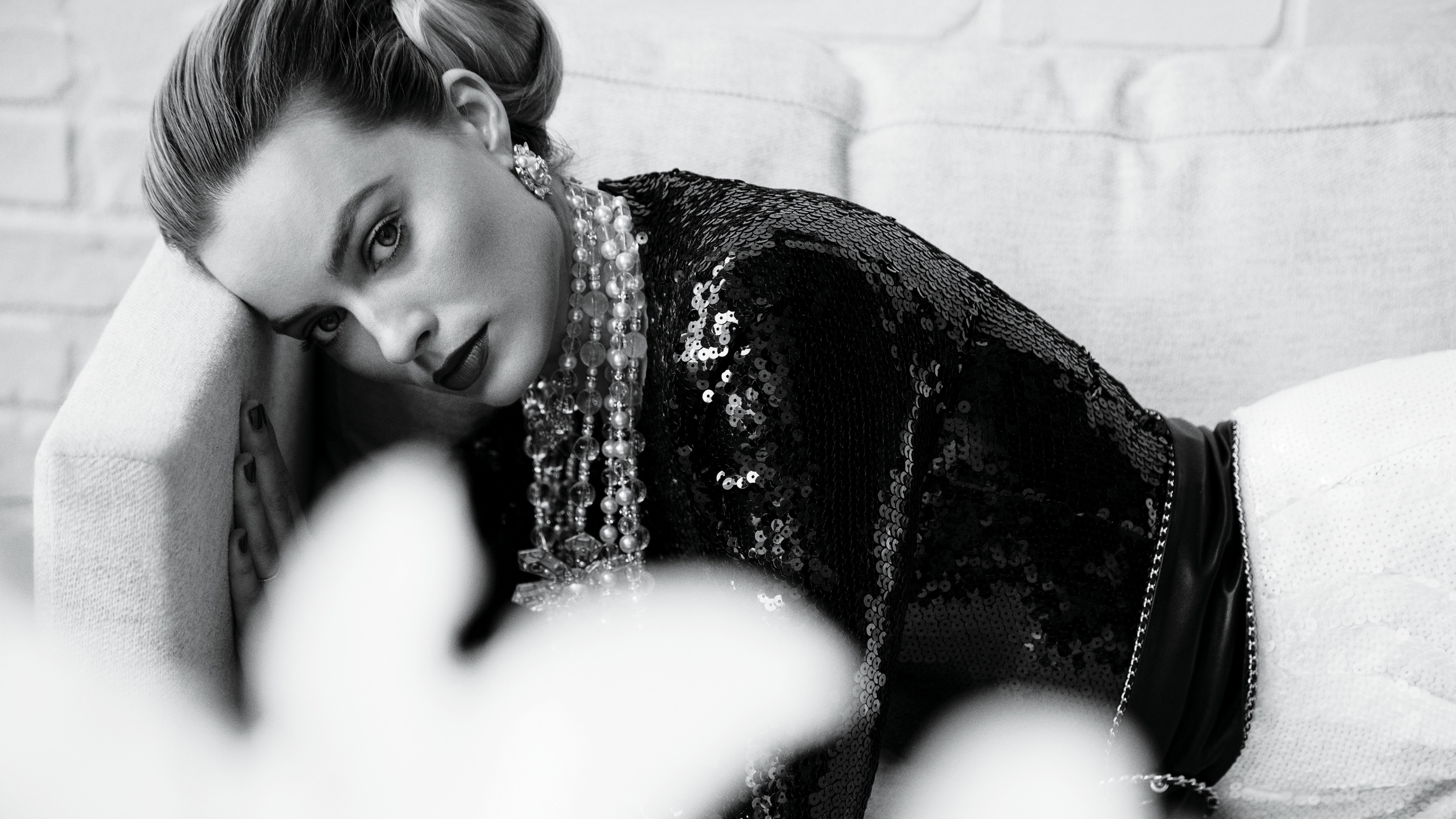 Стильная актриса Марго Робби черно белое фото - 4864x2736