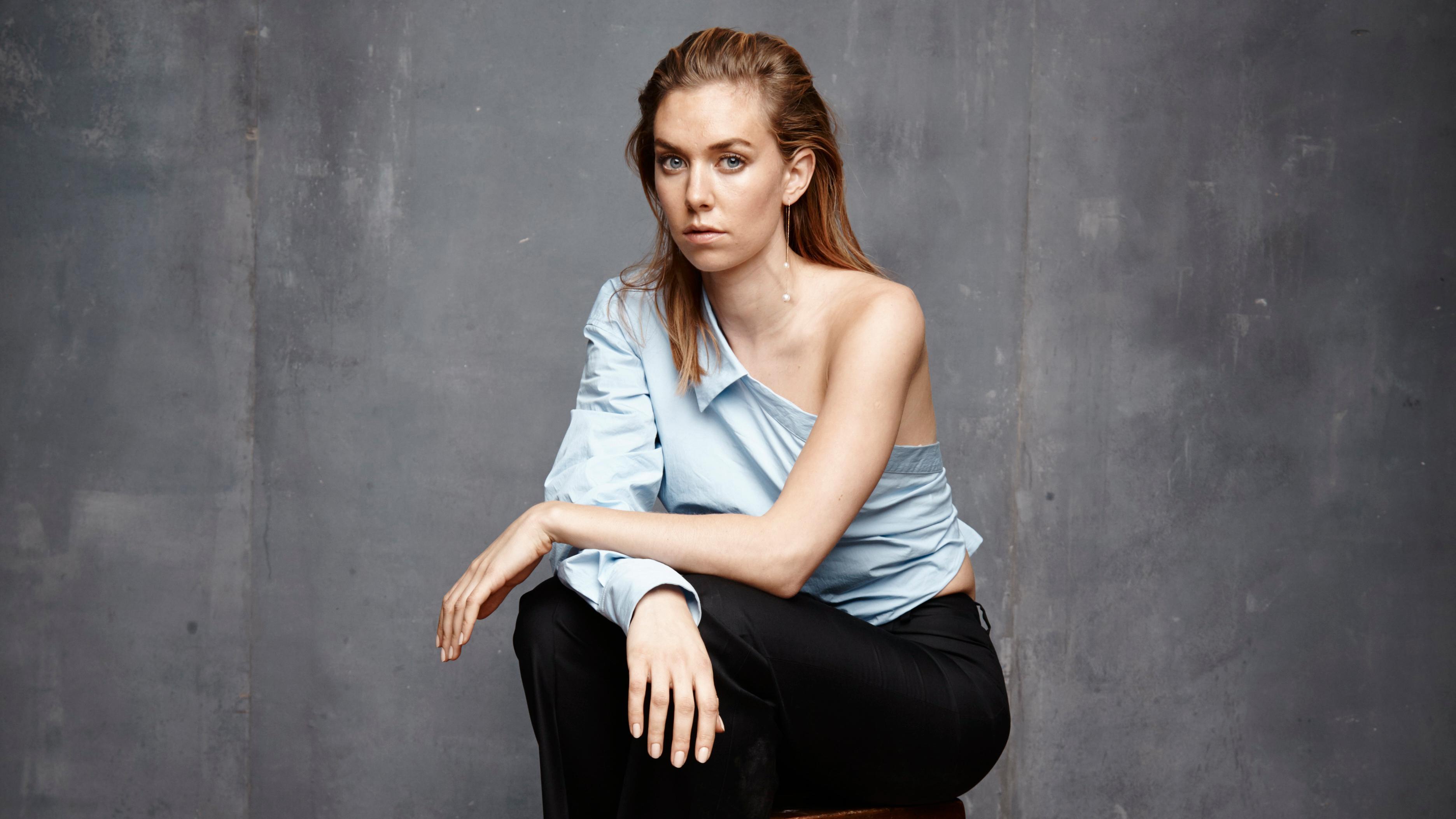 Обои: Английская актриса Ванесса Кирби на сером фоне