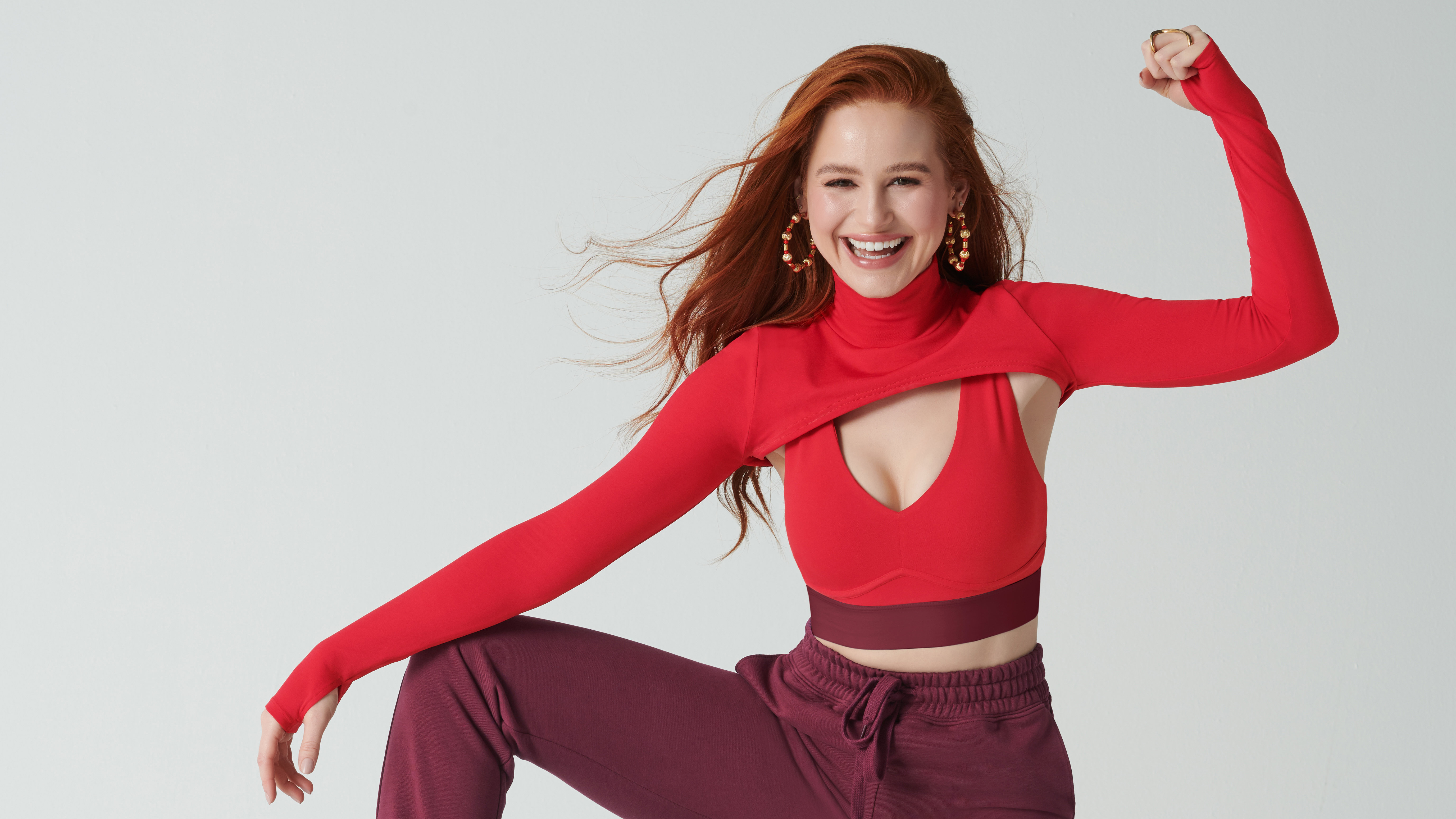 Обои: Улыбающаяся актриса Мэделин Петш в красном наряде
