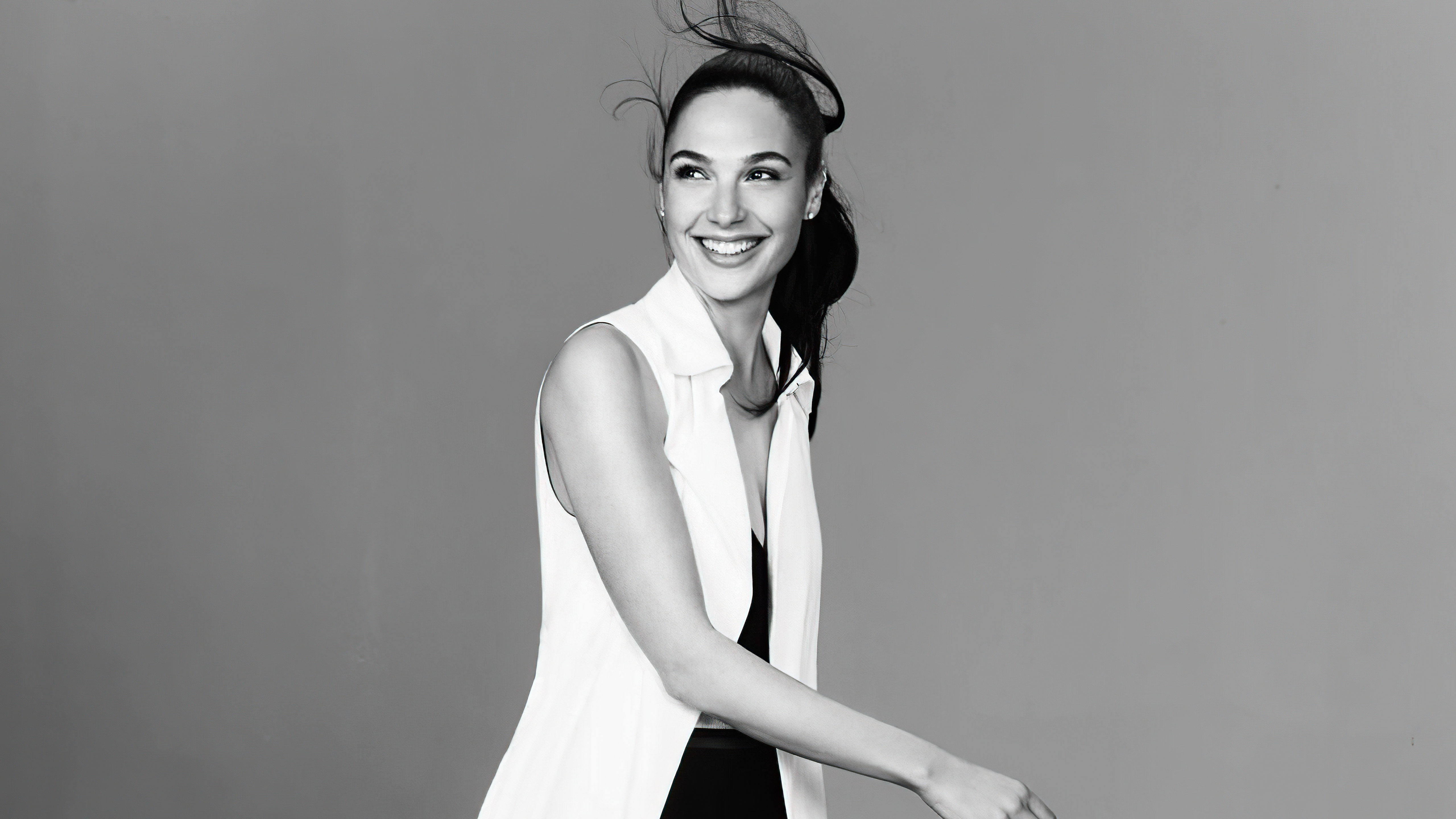 Обои: Улыбающаяся актриса Галь Гадот на сером фоне