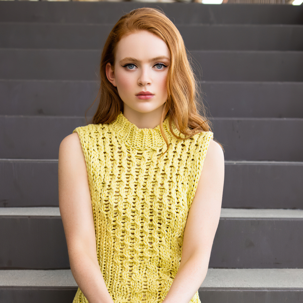 Рыжеволосая девушка актриса Сэди Синк на ступенях