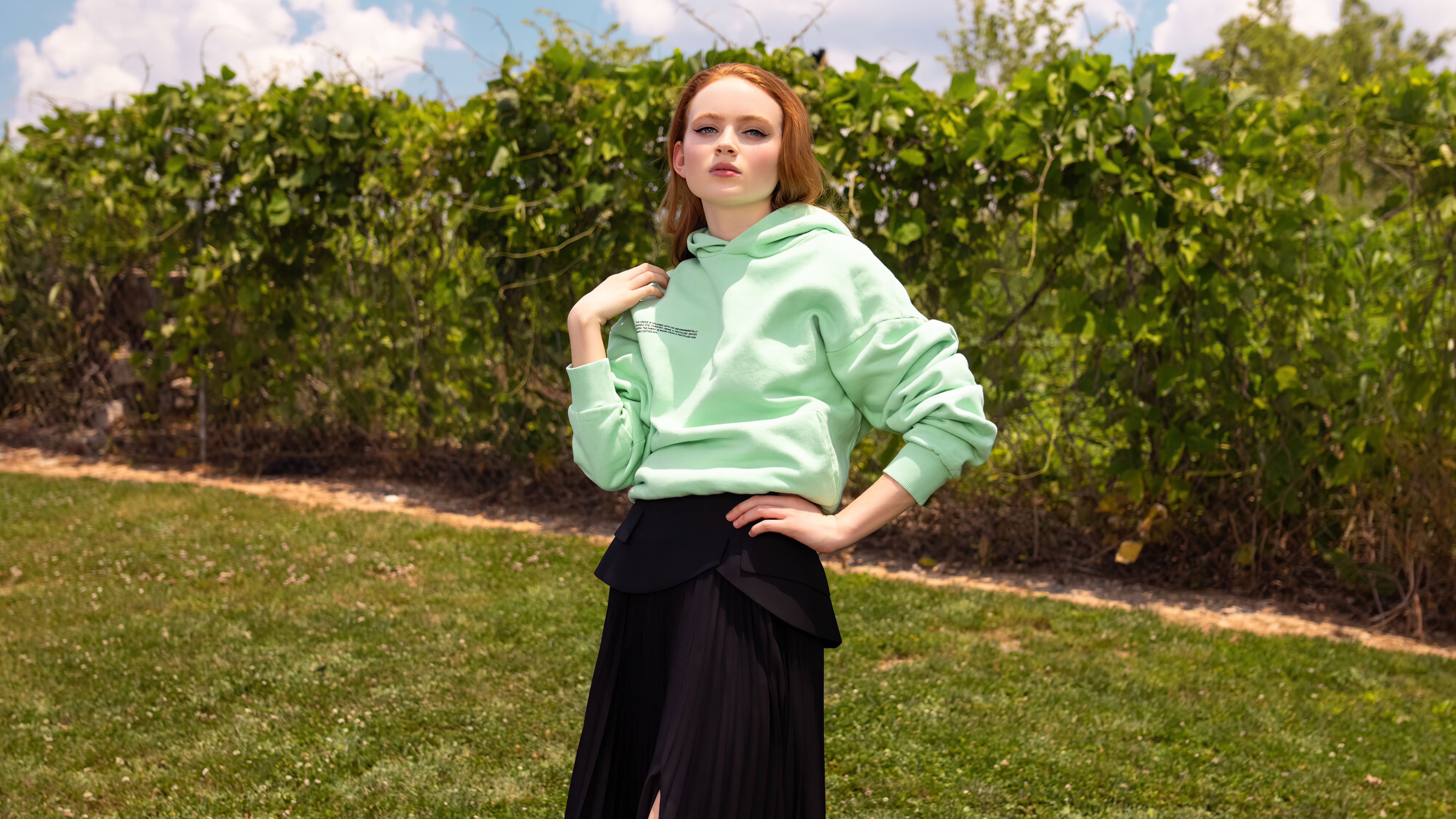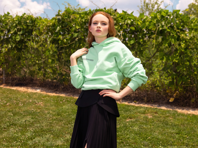 Актриса Сэди Синк в черной юбке - 3840x2161