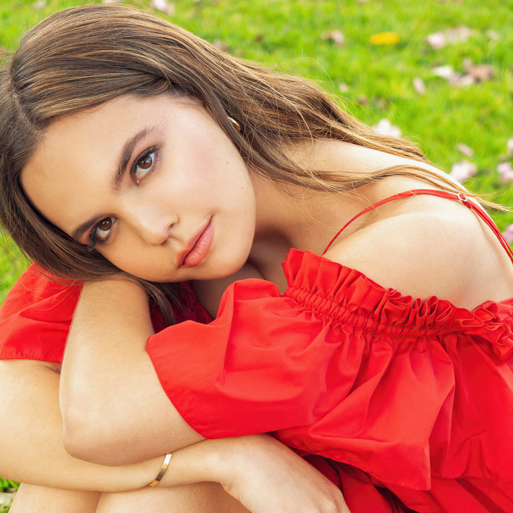 Шатенка Бэйли Мэдисон в красном платье Обои для рабочего стола 1024x1024