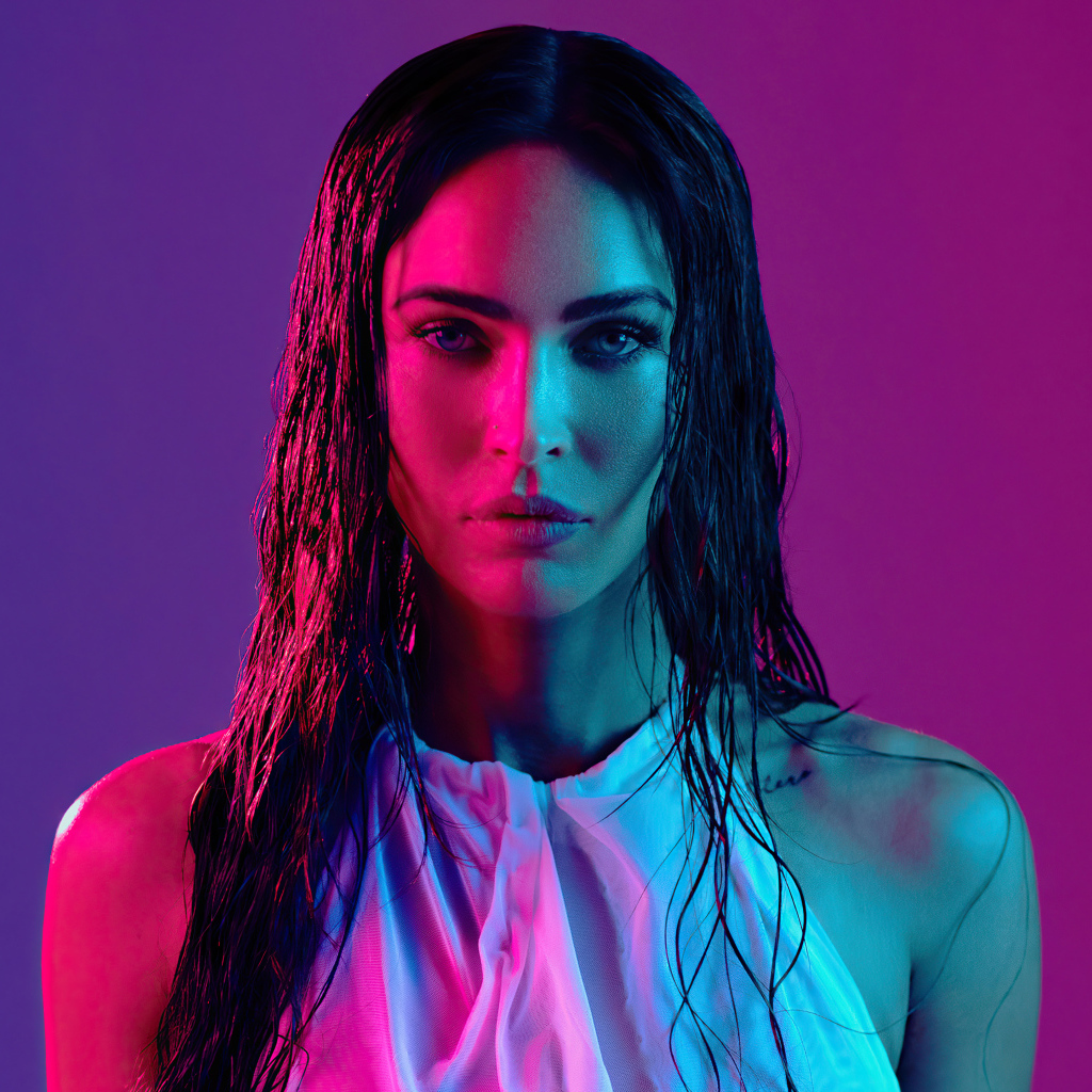 Жгучая брюнетка, актриса Меган Фокс на розовом фоне Обои для рабочего стола 1024x1024