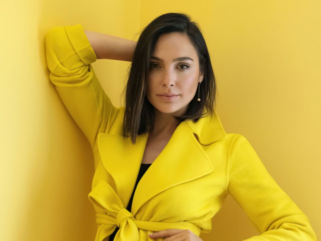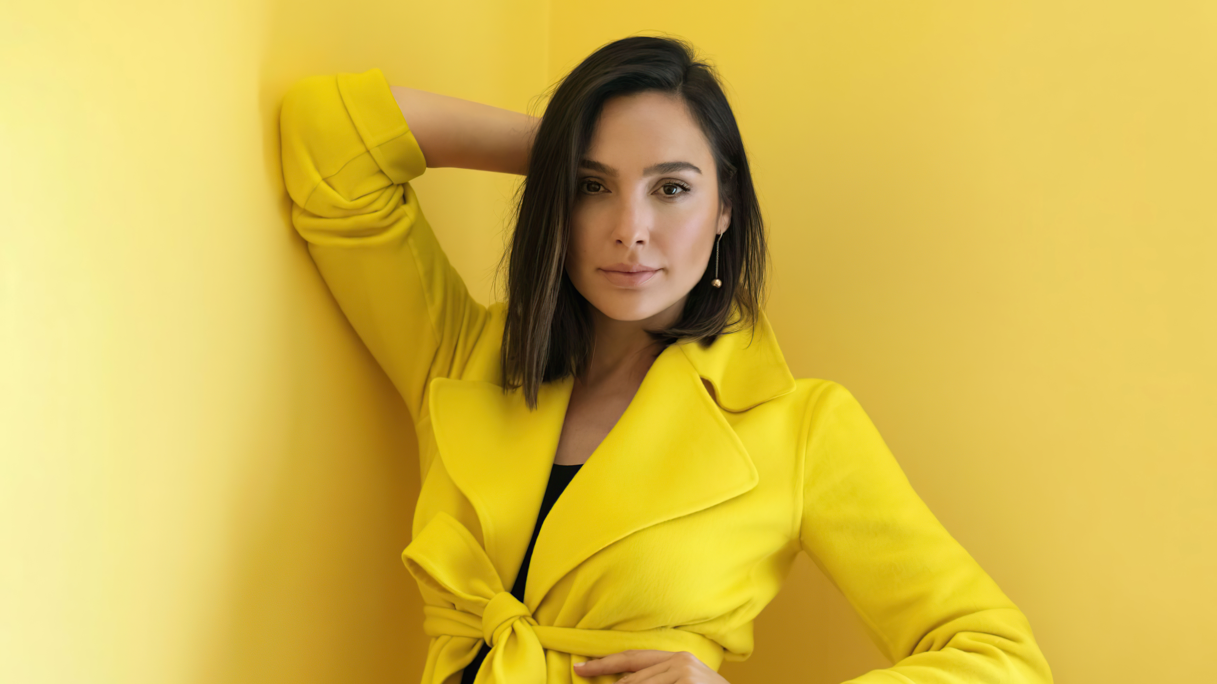 Актриса Галь Гадот на желтом фоне - 5120x2880