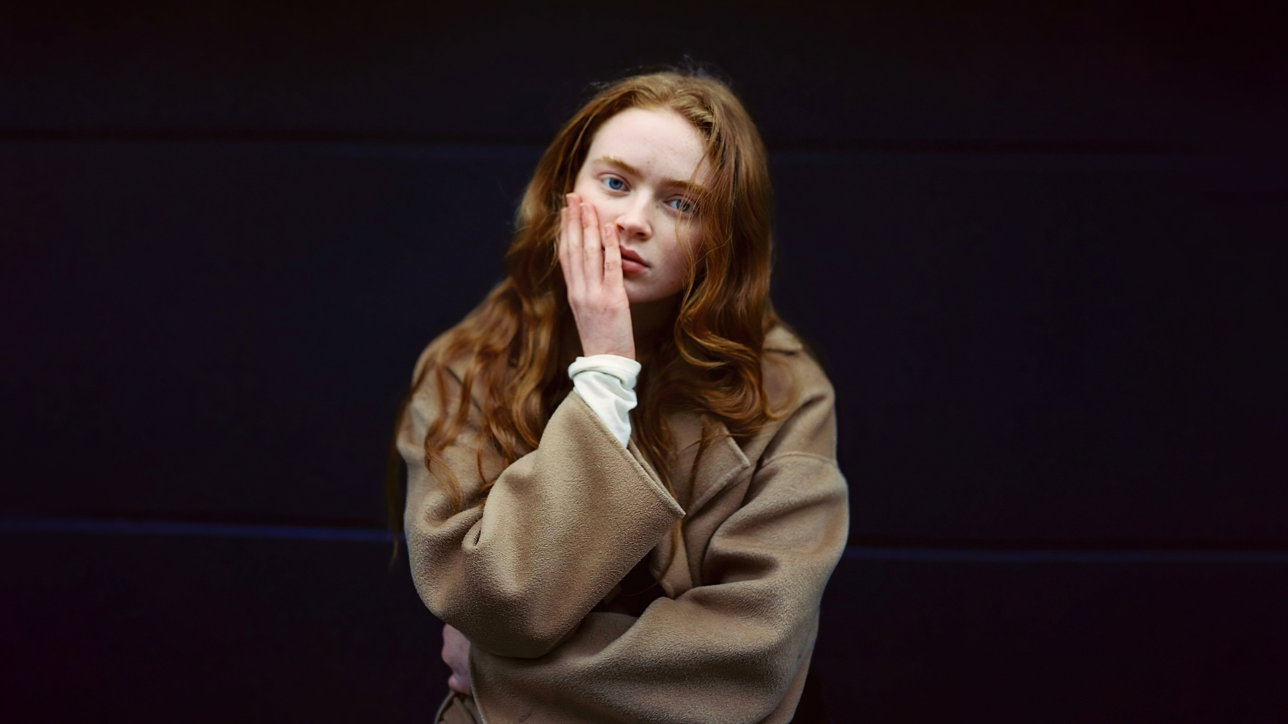 Актриса Сэди Синк на черном фоне - 5120x2880