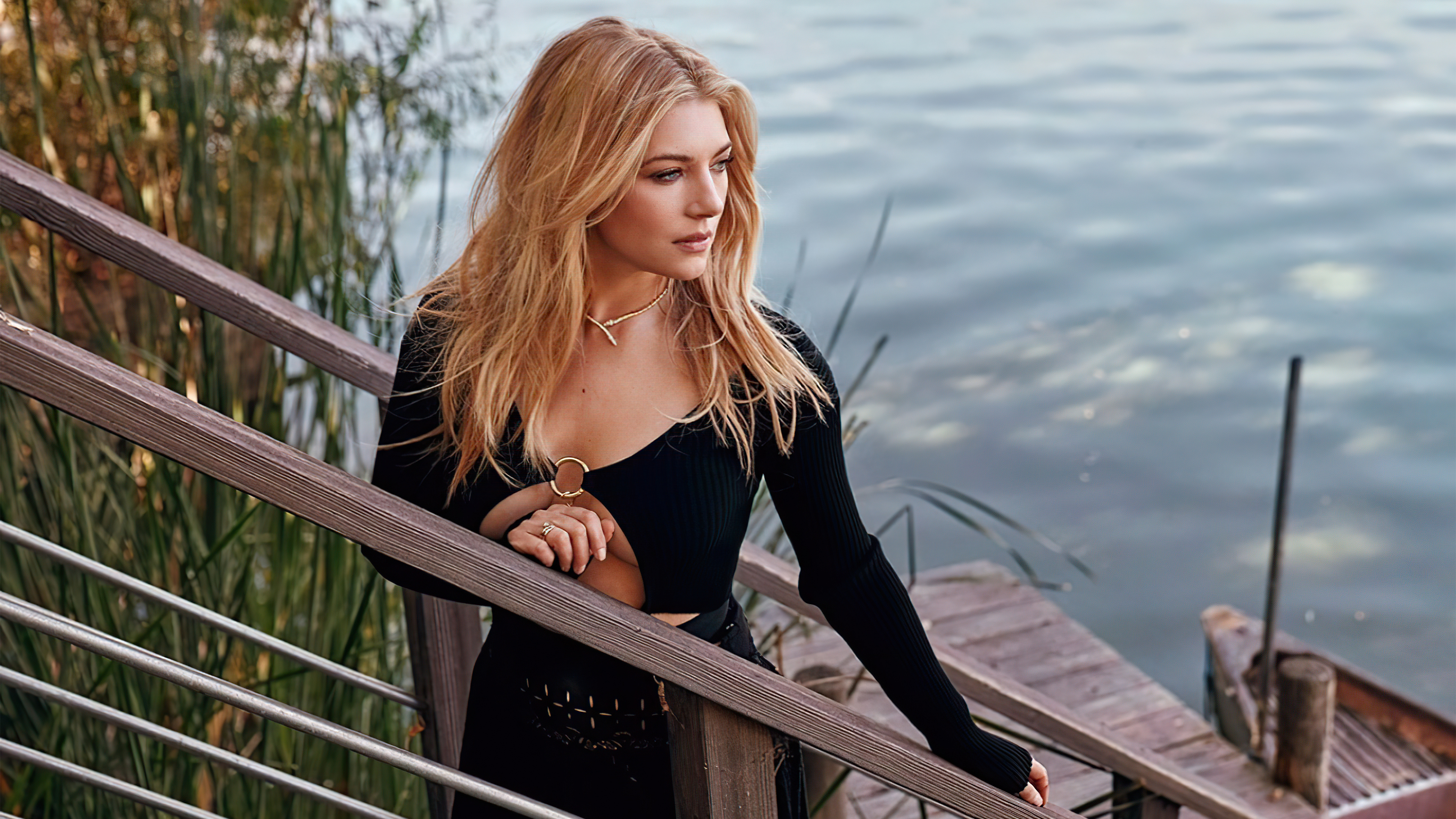Актриса Кэтрин Винник стоит на мосту - 3840x2160