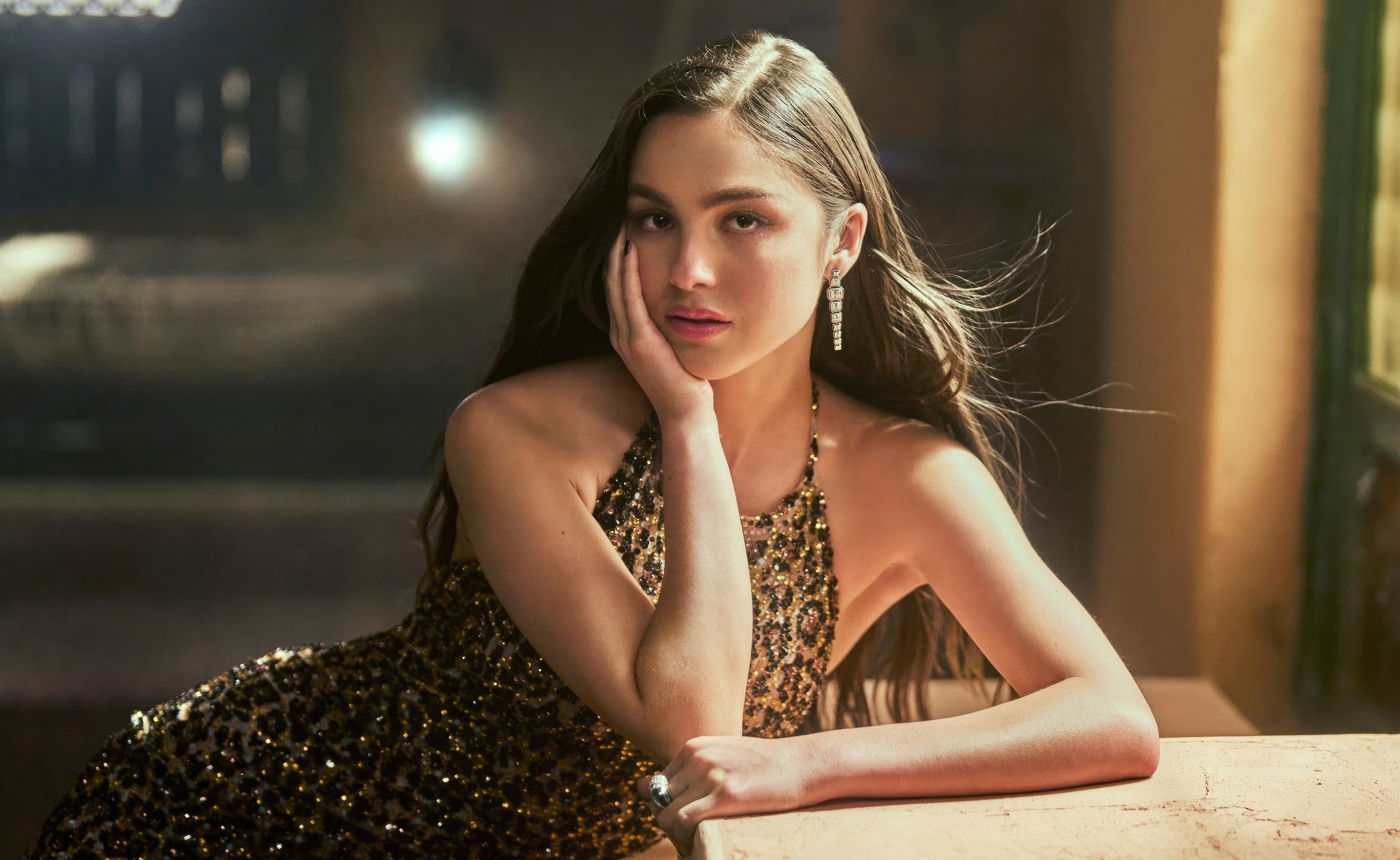 Американская актриса и певица Зендея в спортивном костюме на сером фоне