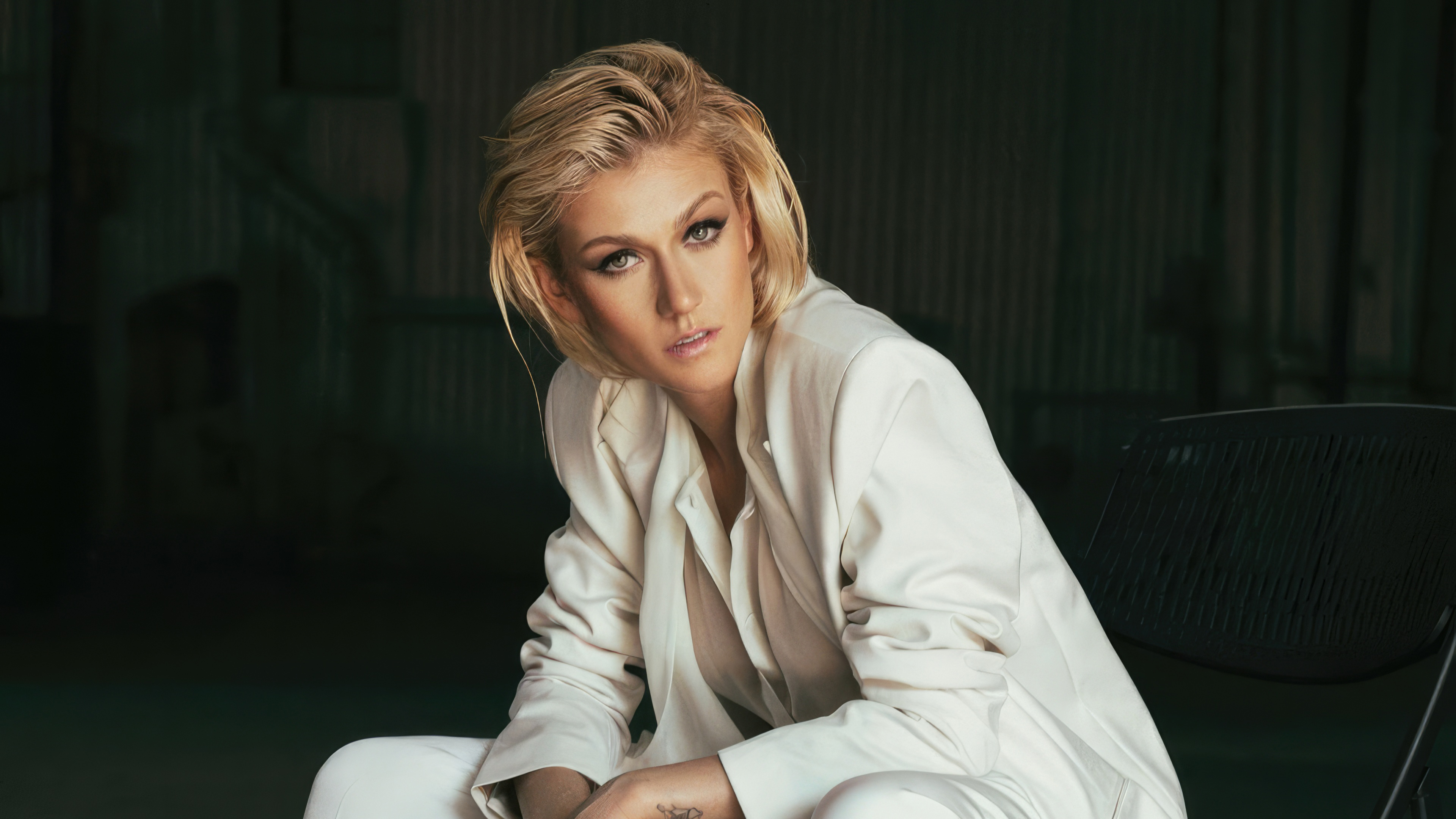 Актриса Кэтрин Макнамара в белом костюме - 3840x2160