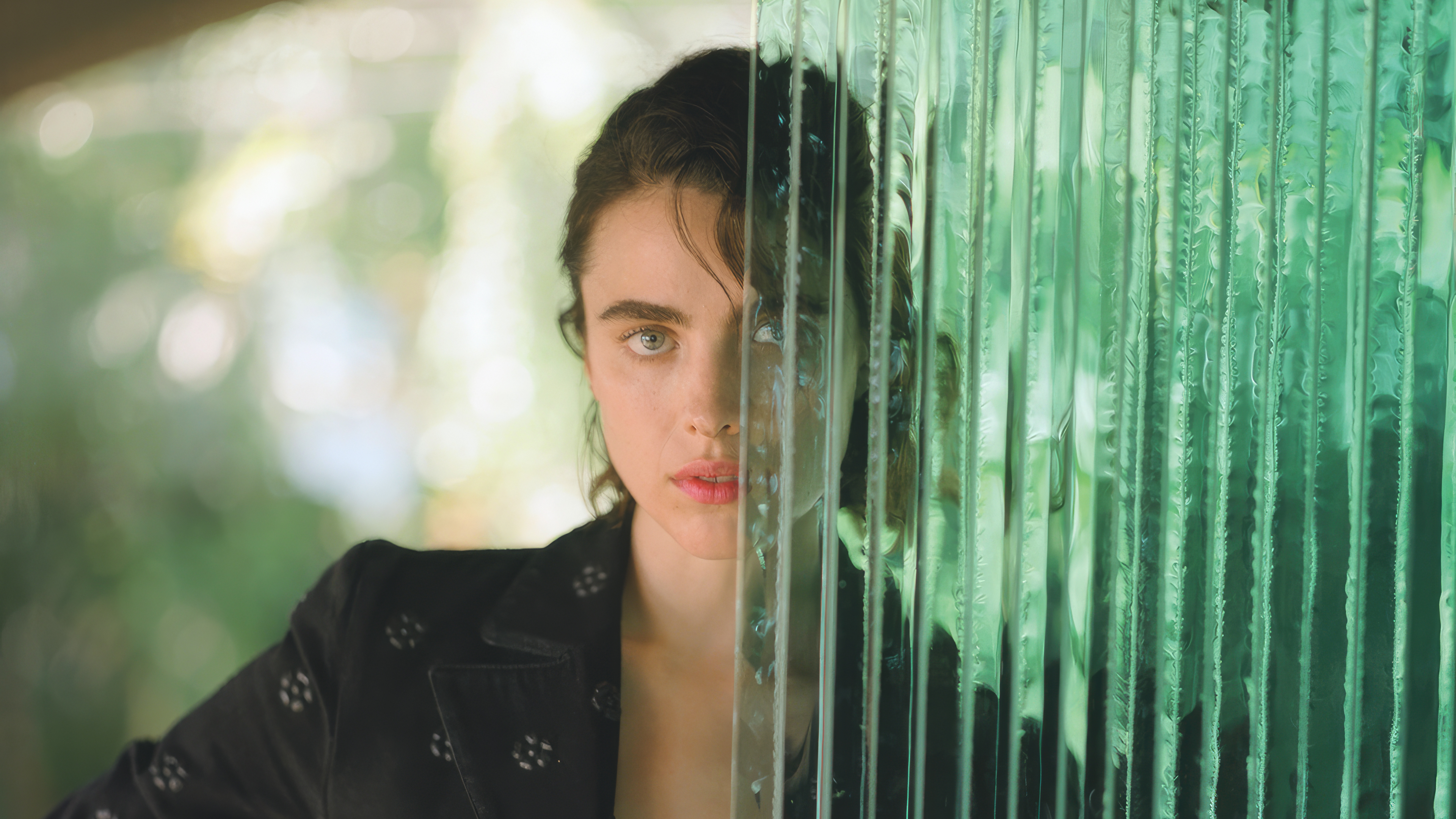 Актриса Ребекка Фергюсон розжимает цепь на белом фоне