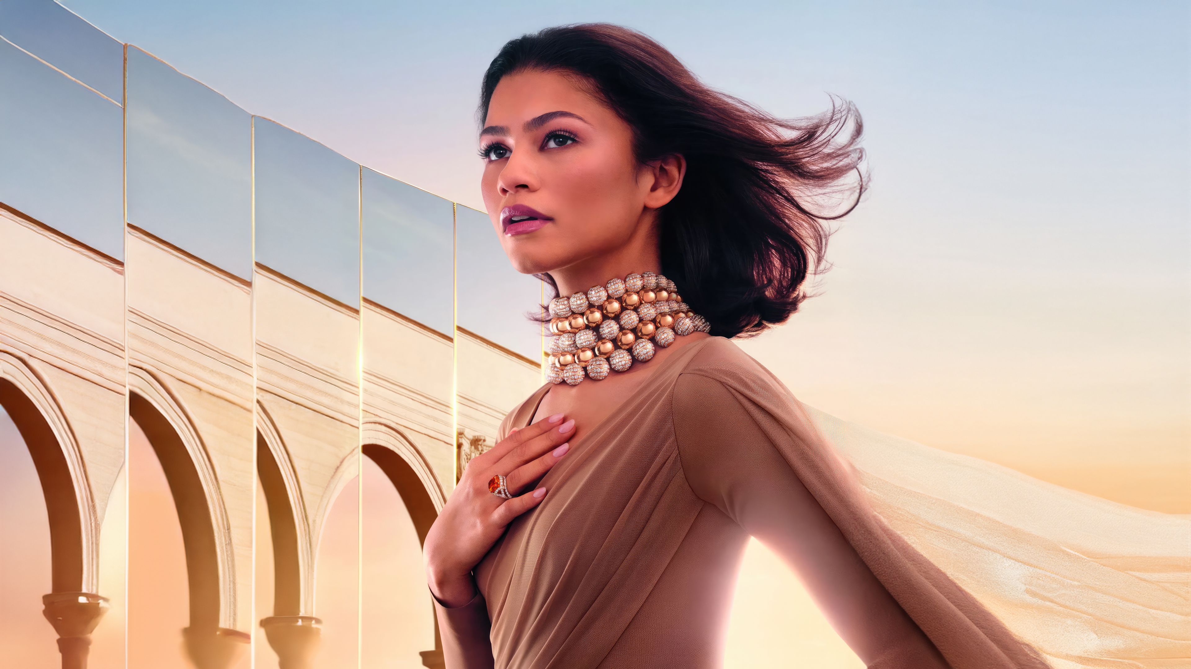 Актриса Зендая с украшениями на шее - 3840x2160