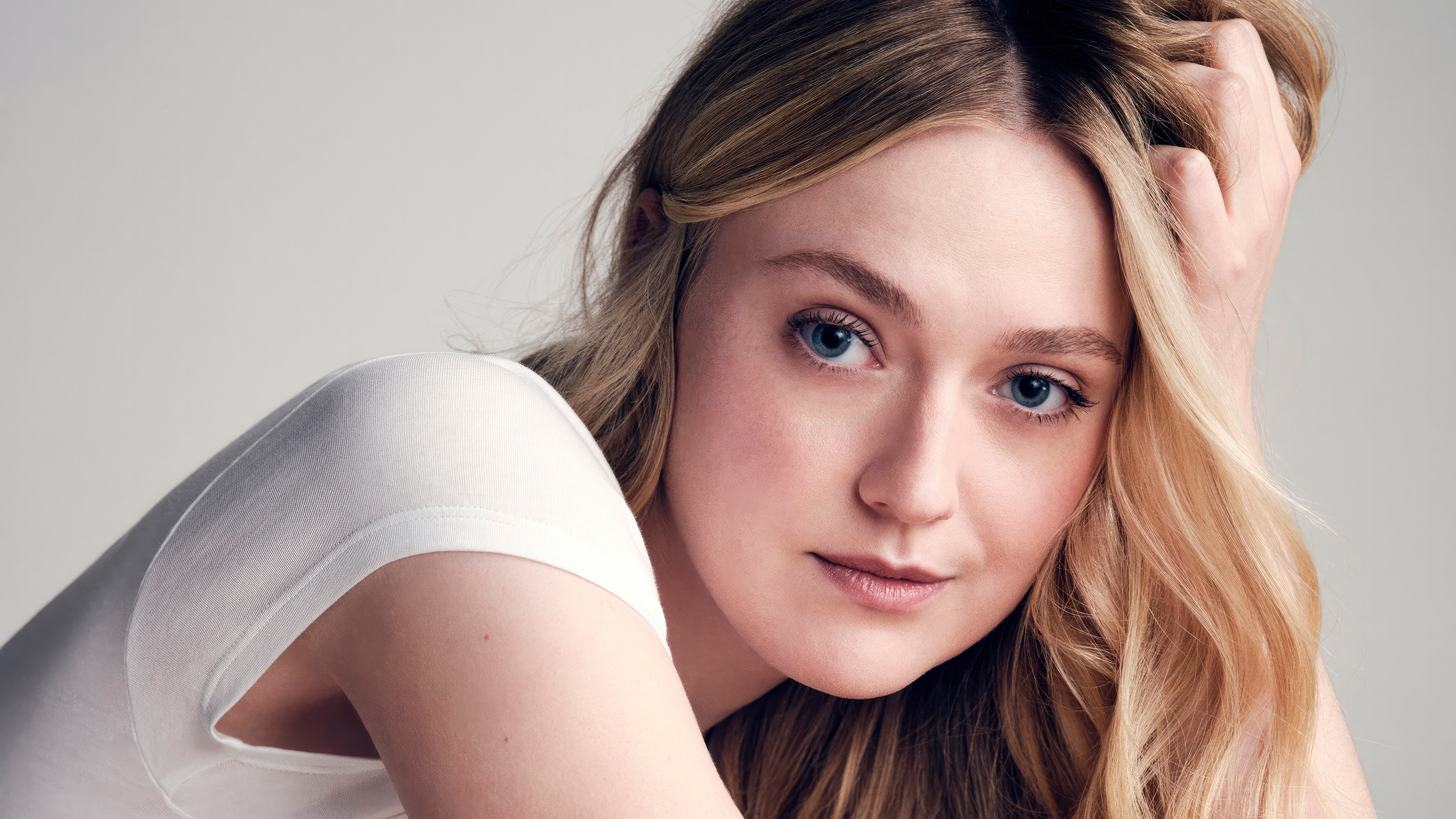 Голубоглазая актриса Дакота Фэннинг крупным планом - 3838x2159