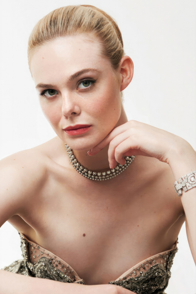 Американская актриса Эль Фэннинг на белом фоне Обои для рабочего стола 640x960