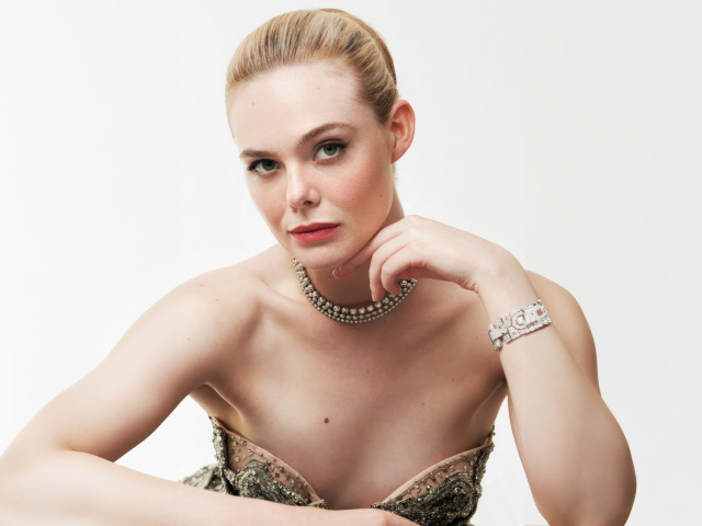 Обои: Американская актриса Эль Фэннинг на белом фоне