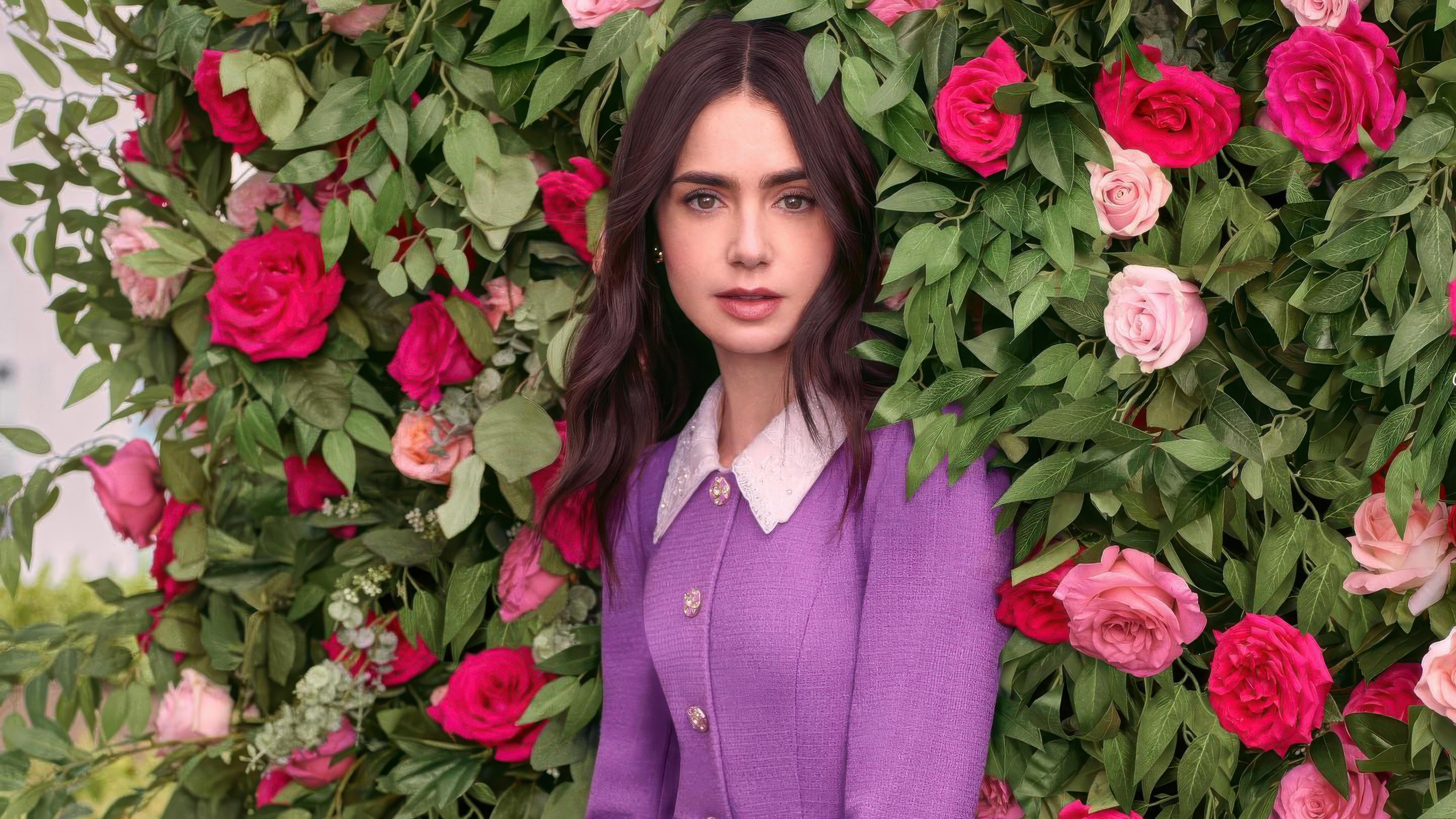 Актриса Лили Коллинз стоит у цветов - 3840x2160