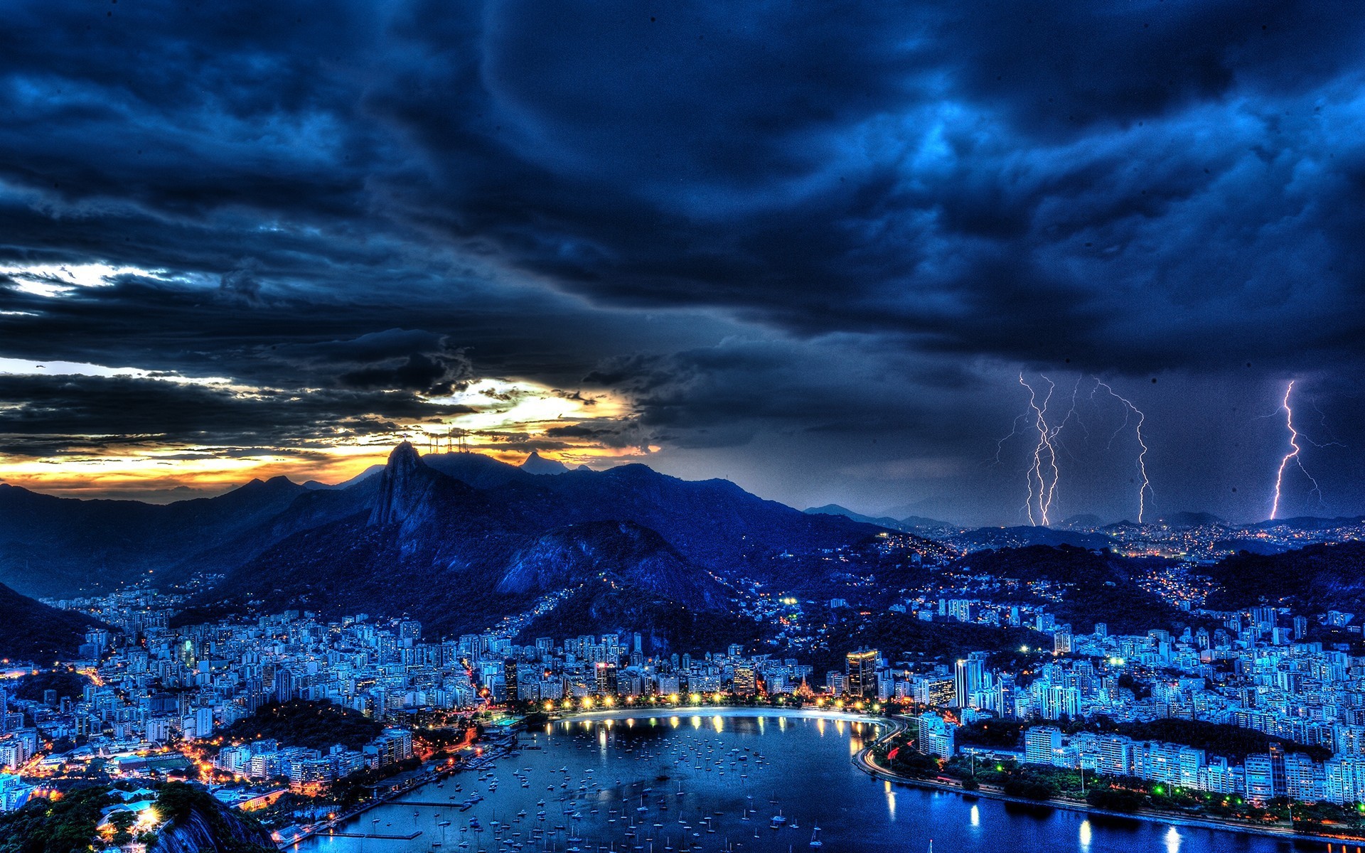 Гроза над городом после заката солнца - 1920x1200