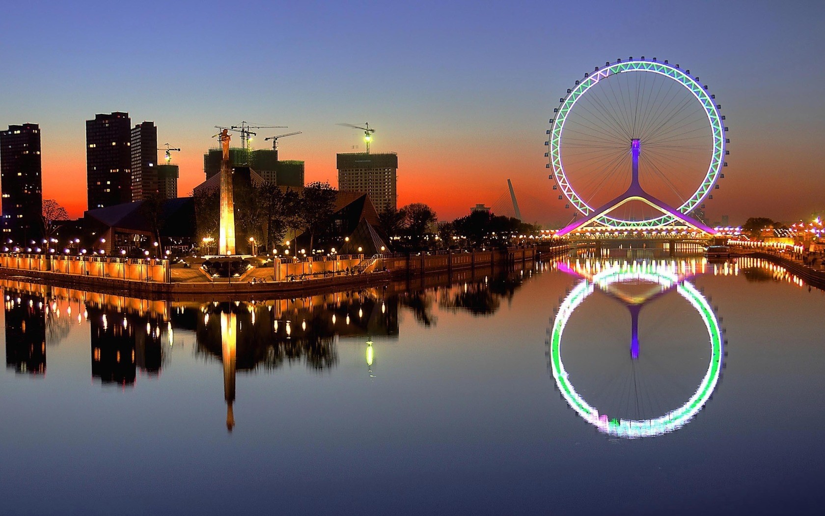 Яркое колесо обозрения в китайском городе - 1680x1050