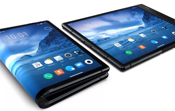 Сгибаемый смартфон Royole FlexPai на белом фоне Обои для рабочего стола 600x382