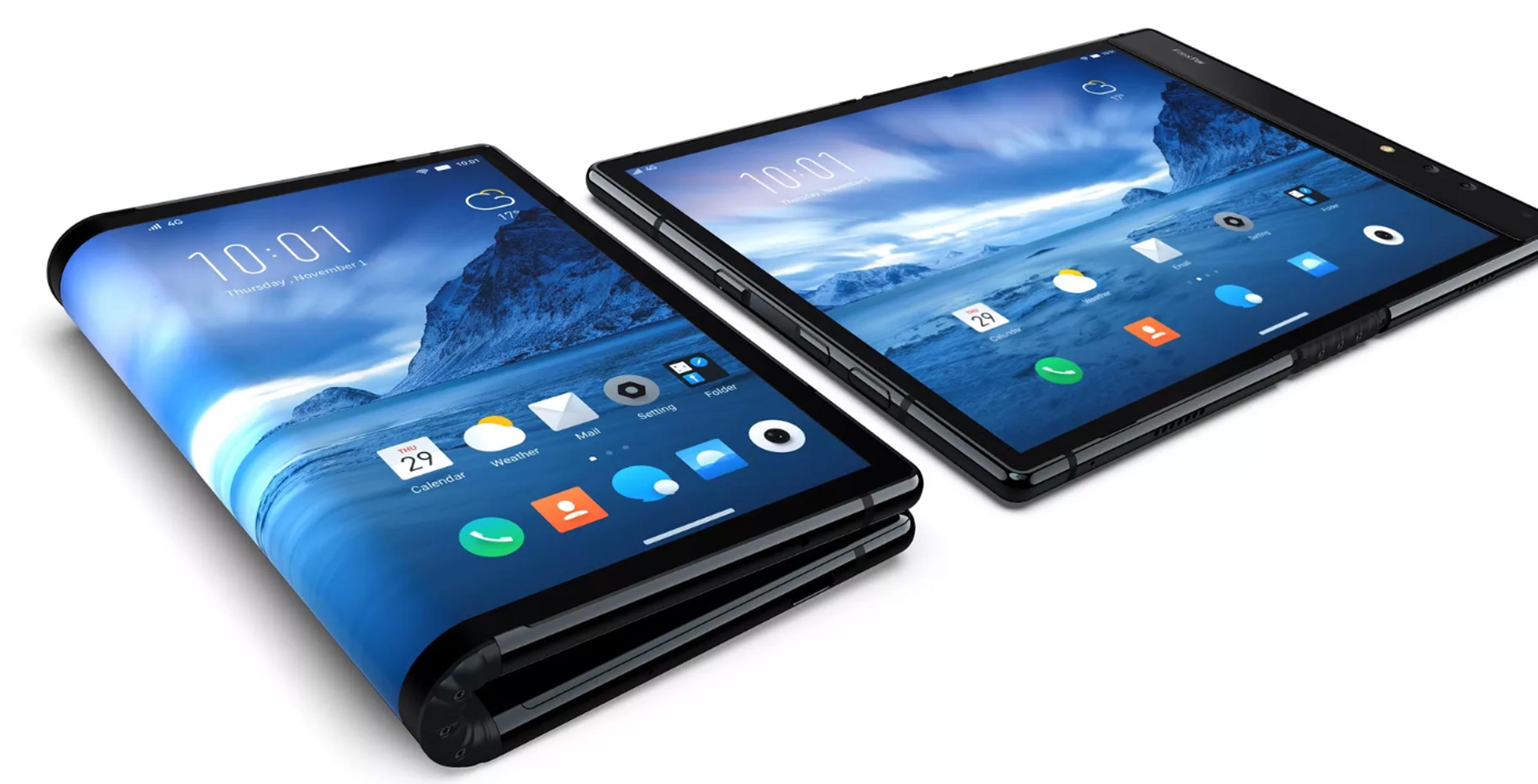Сгибаемый смартфон Royole FlexPai на белом фоне