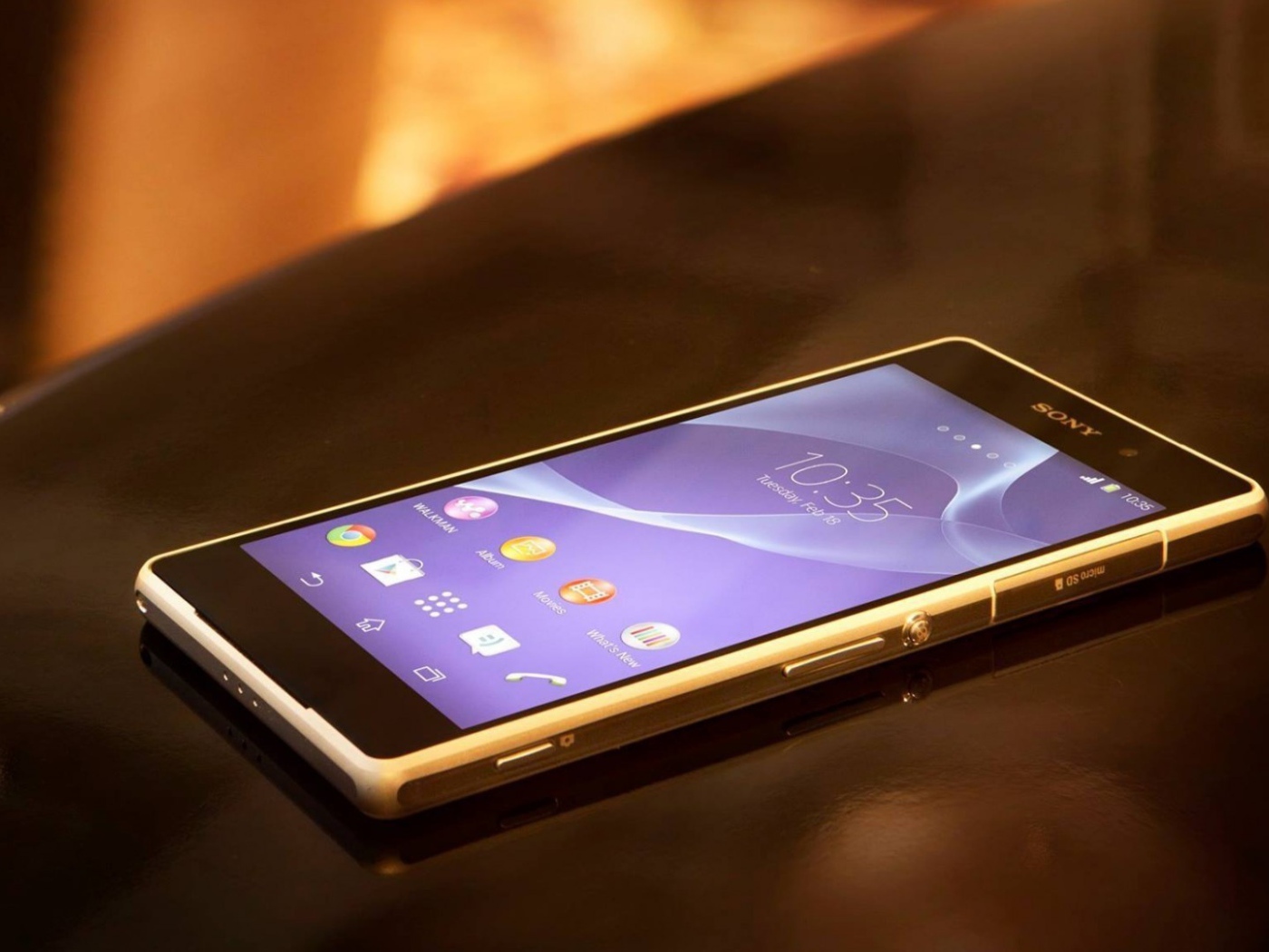 Смартфон под брендом Сони на столе Обои для рабочего стола 1400x1050
