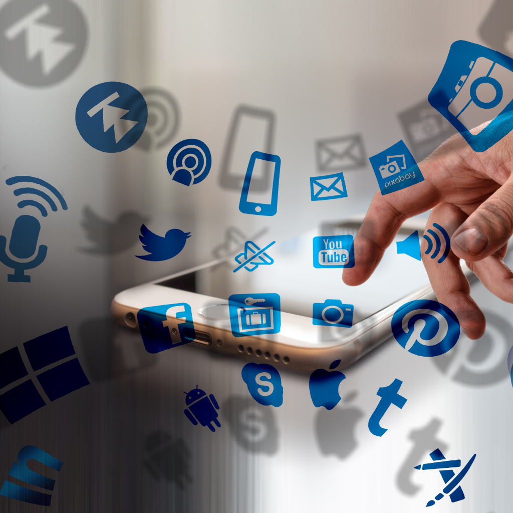 Значки социальных сетей со смартфоном Обои для рабочего стола 1024x1024