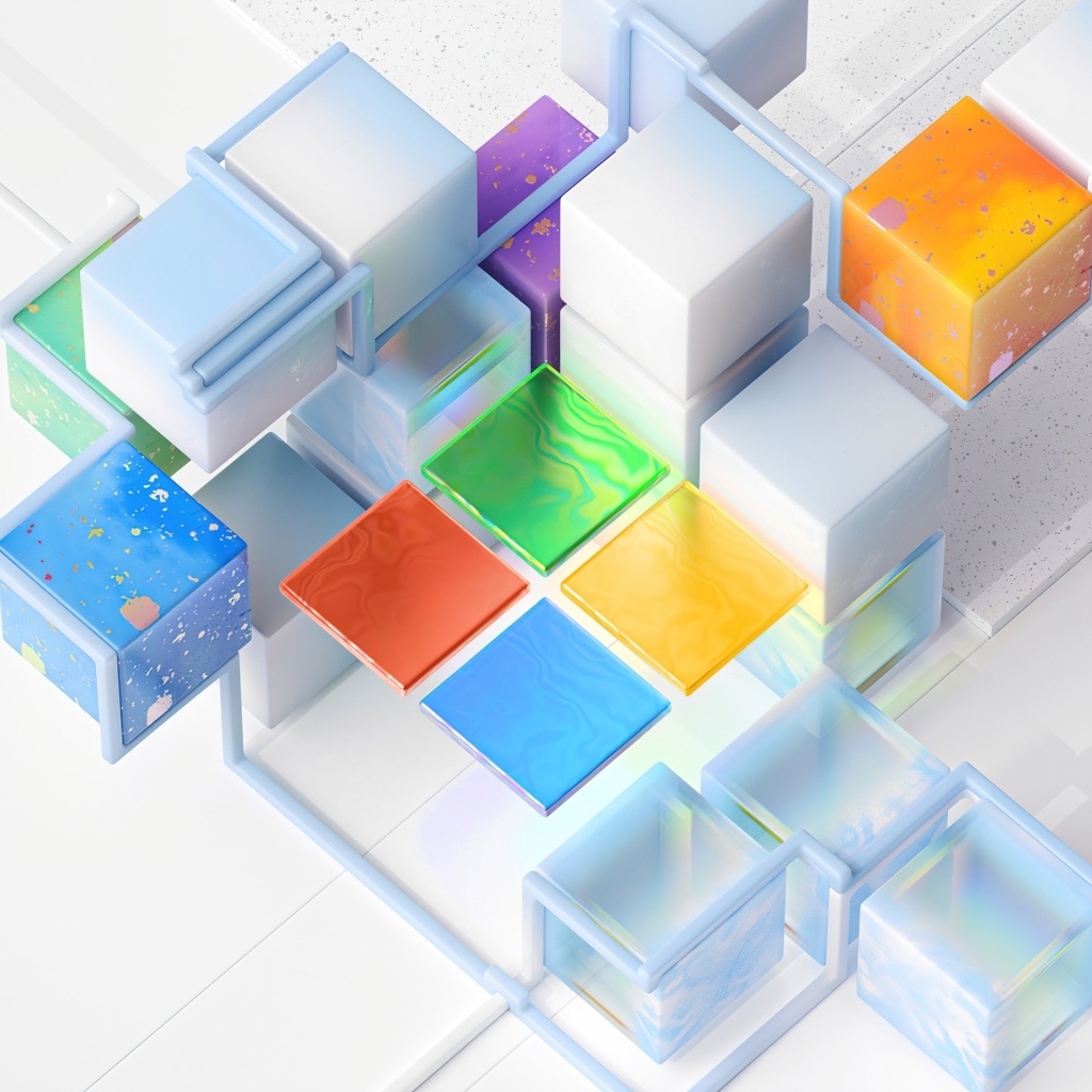 Разноцветные абстрактные кубы для Windows 365 Обои для рабочего стола 1024x1024