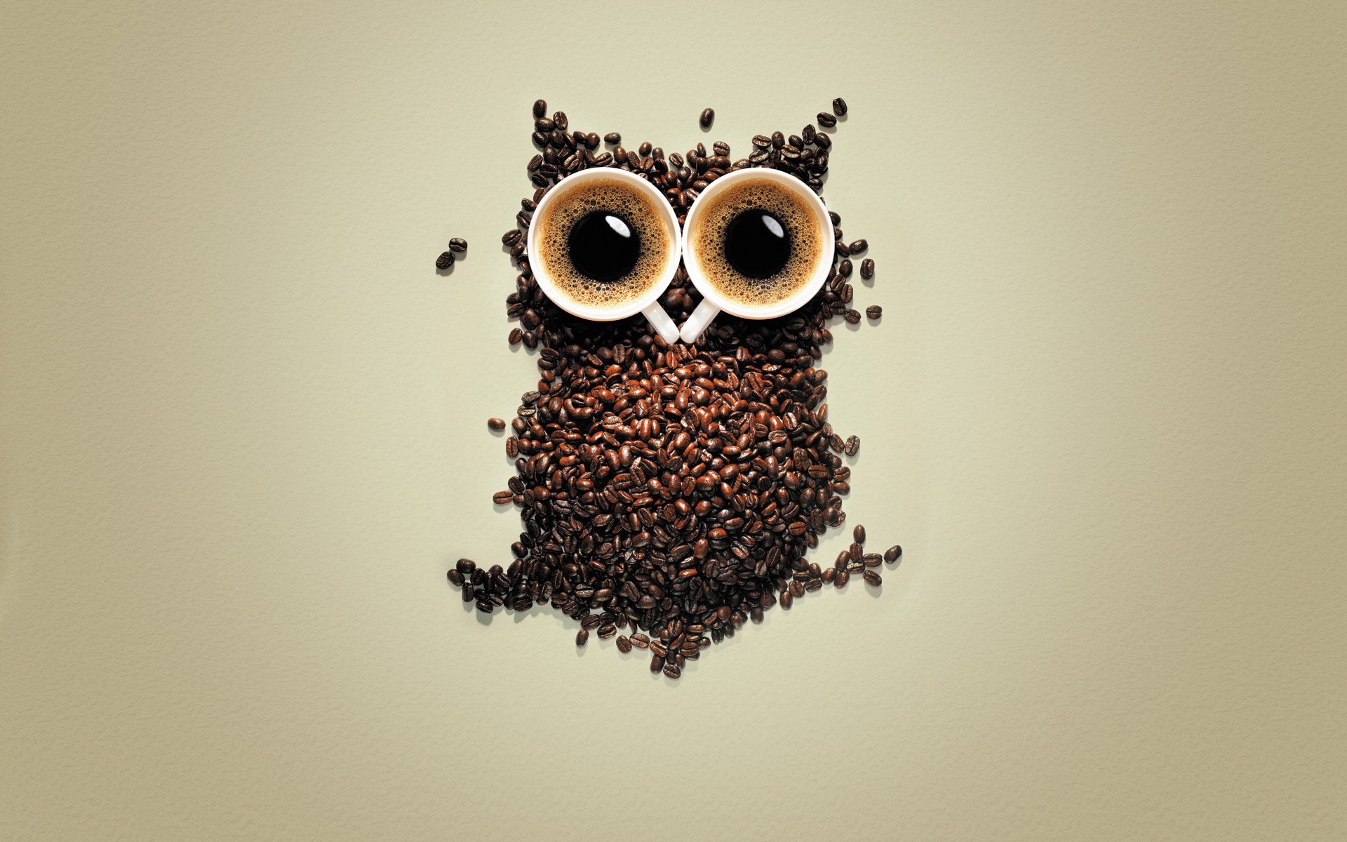 Сова из кофе, серый фон - 1920x1200