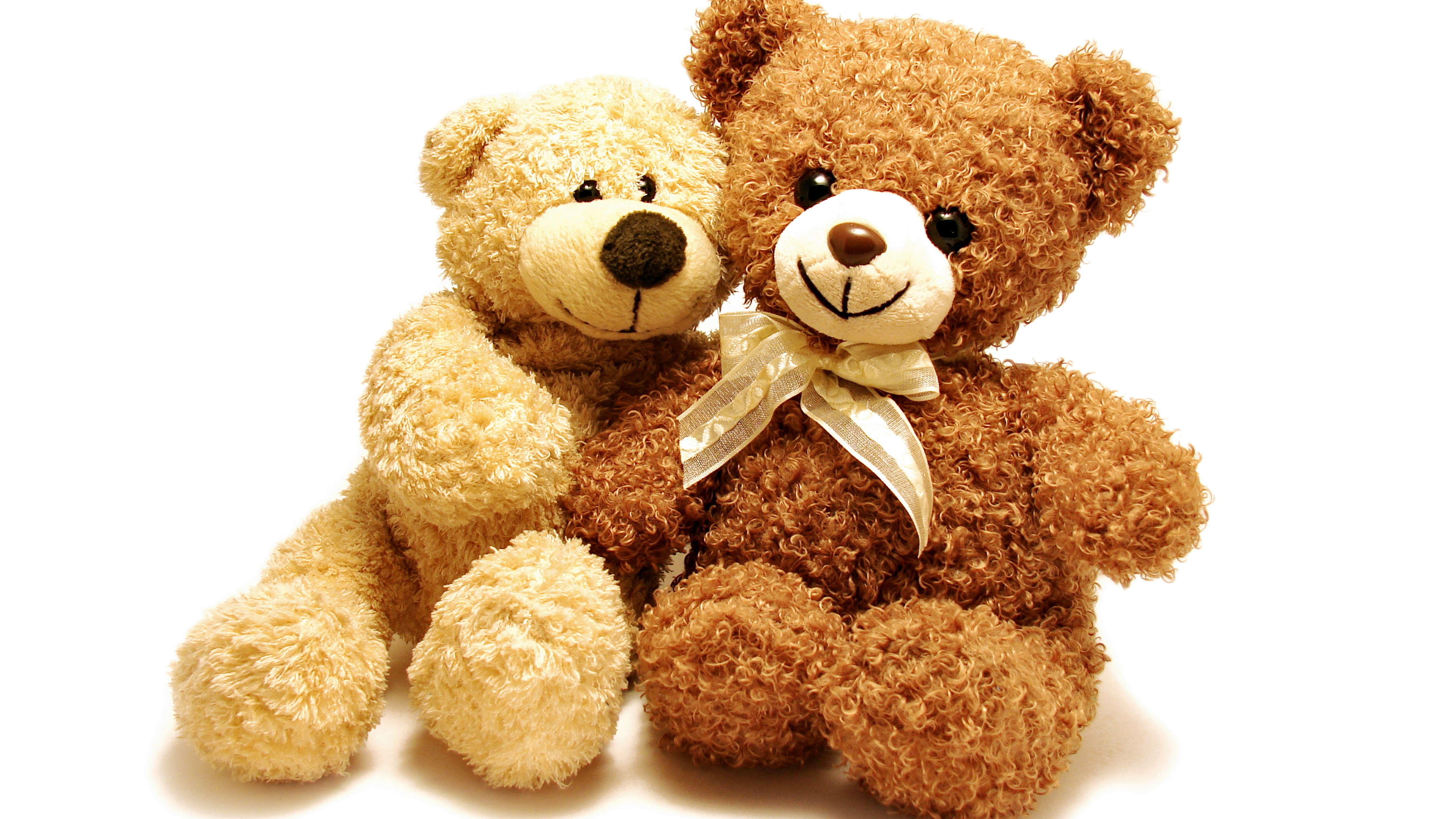 Два плюшевых медвежонка на белом фоне - 5120x2880
