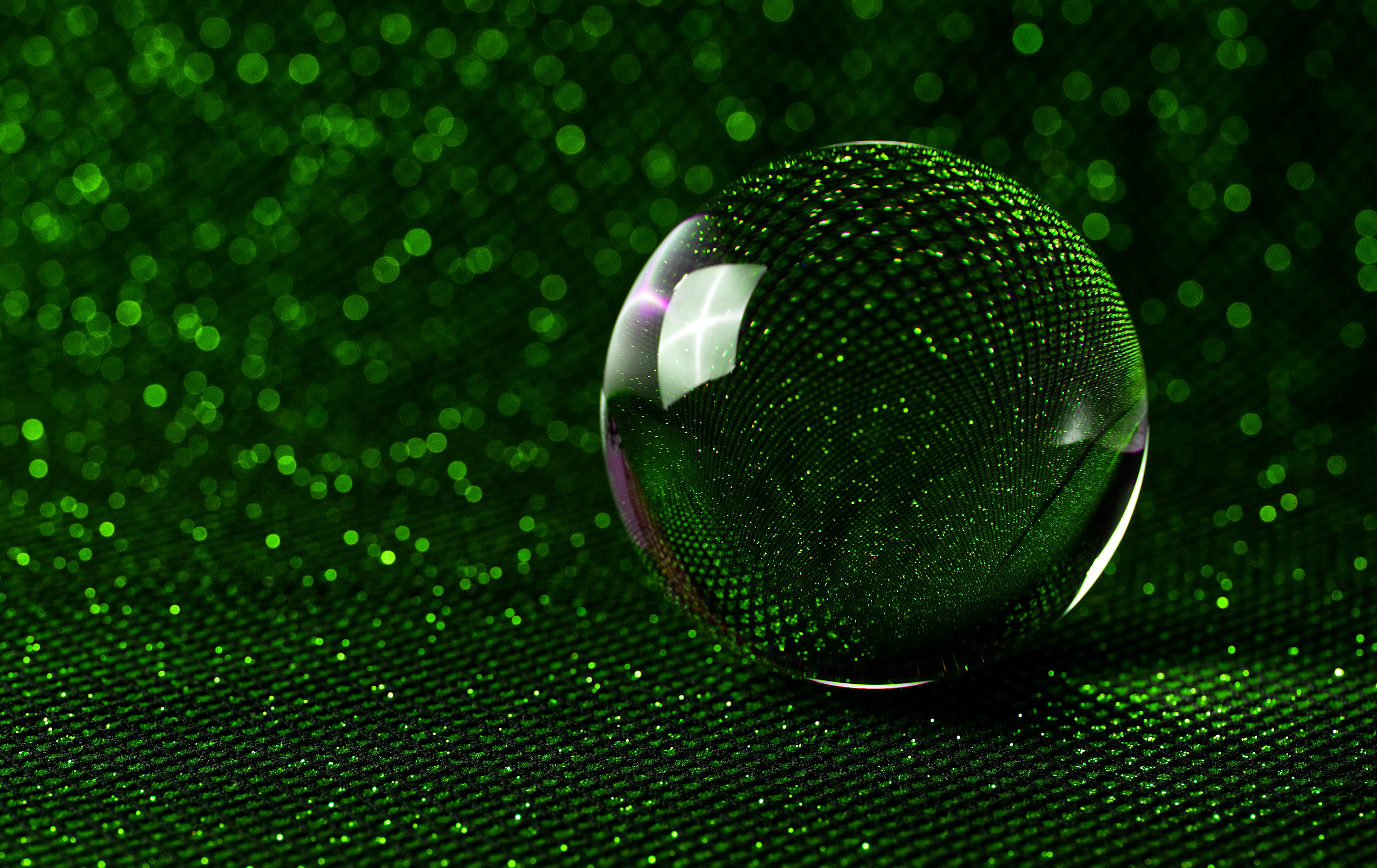 Обои: Большой стеклянный шар на зеленом блестящем фоне