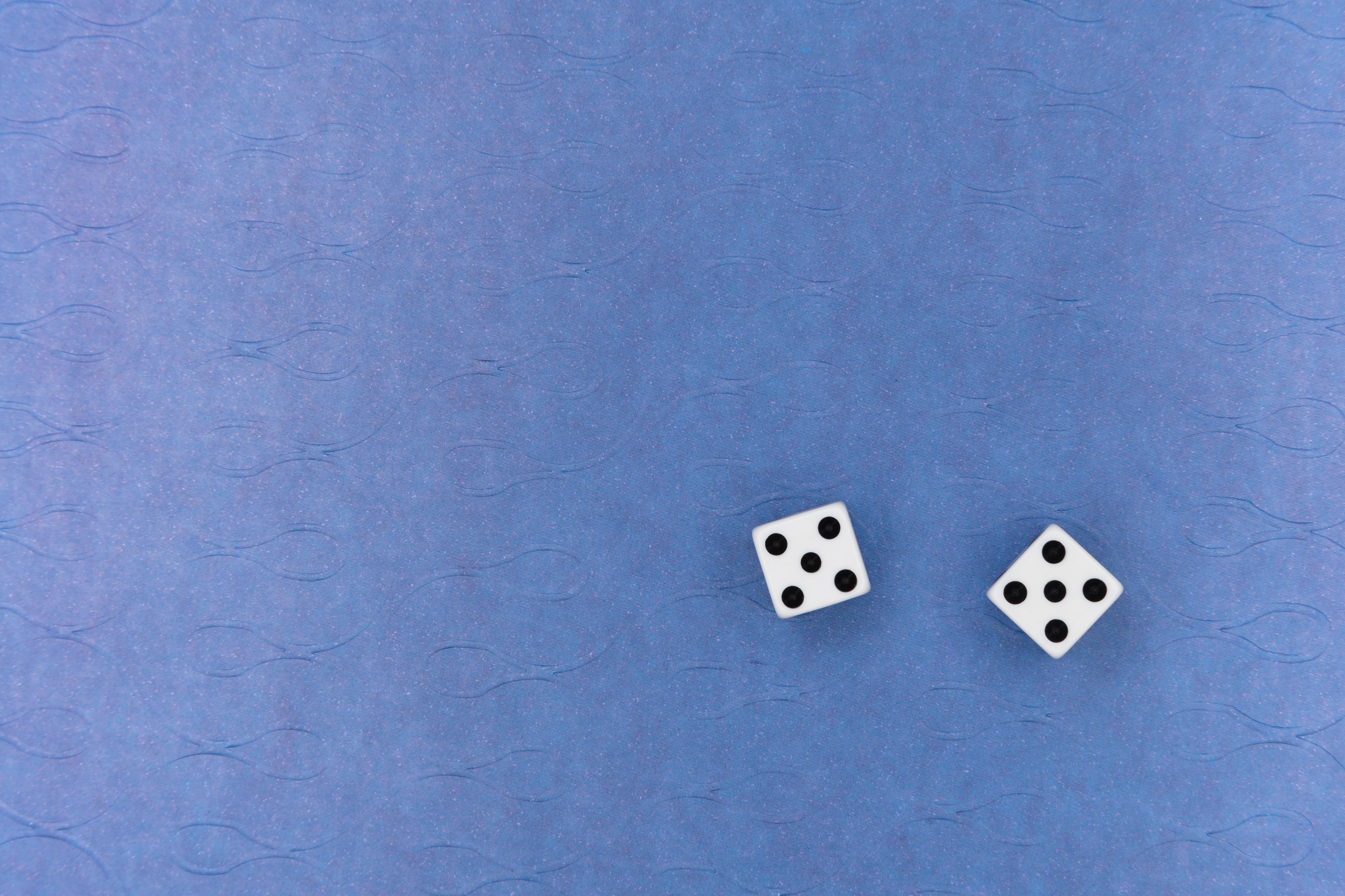 Две игральные кости на синем фоне - 3999x2666