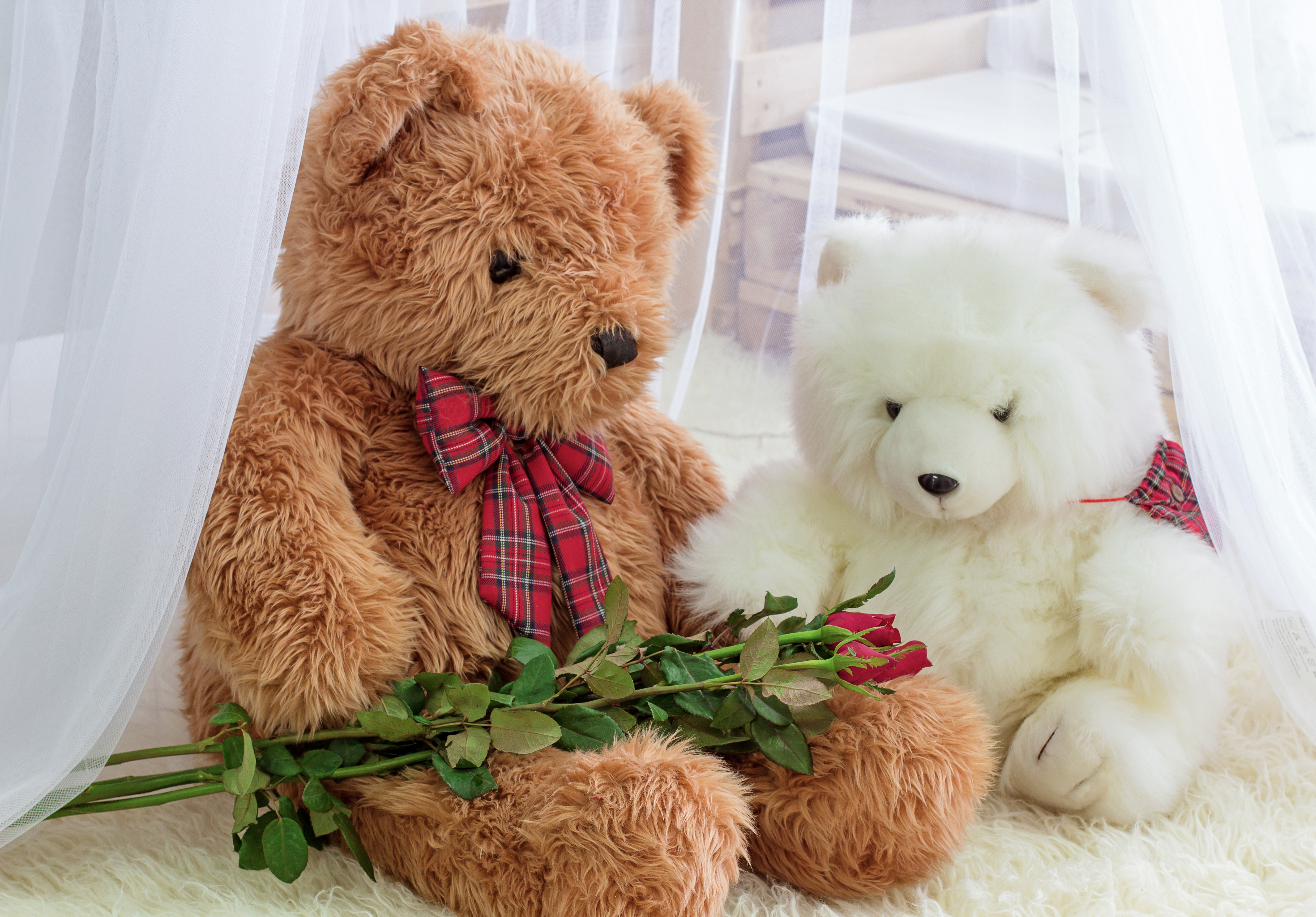 Два игрушечных медведя с розами - 4956x3456