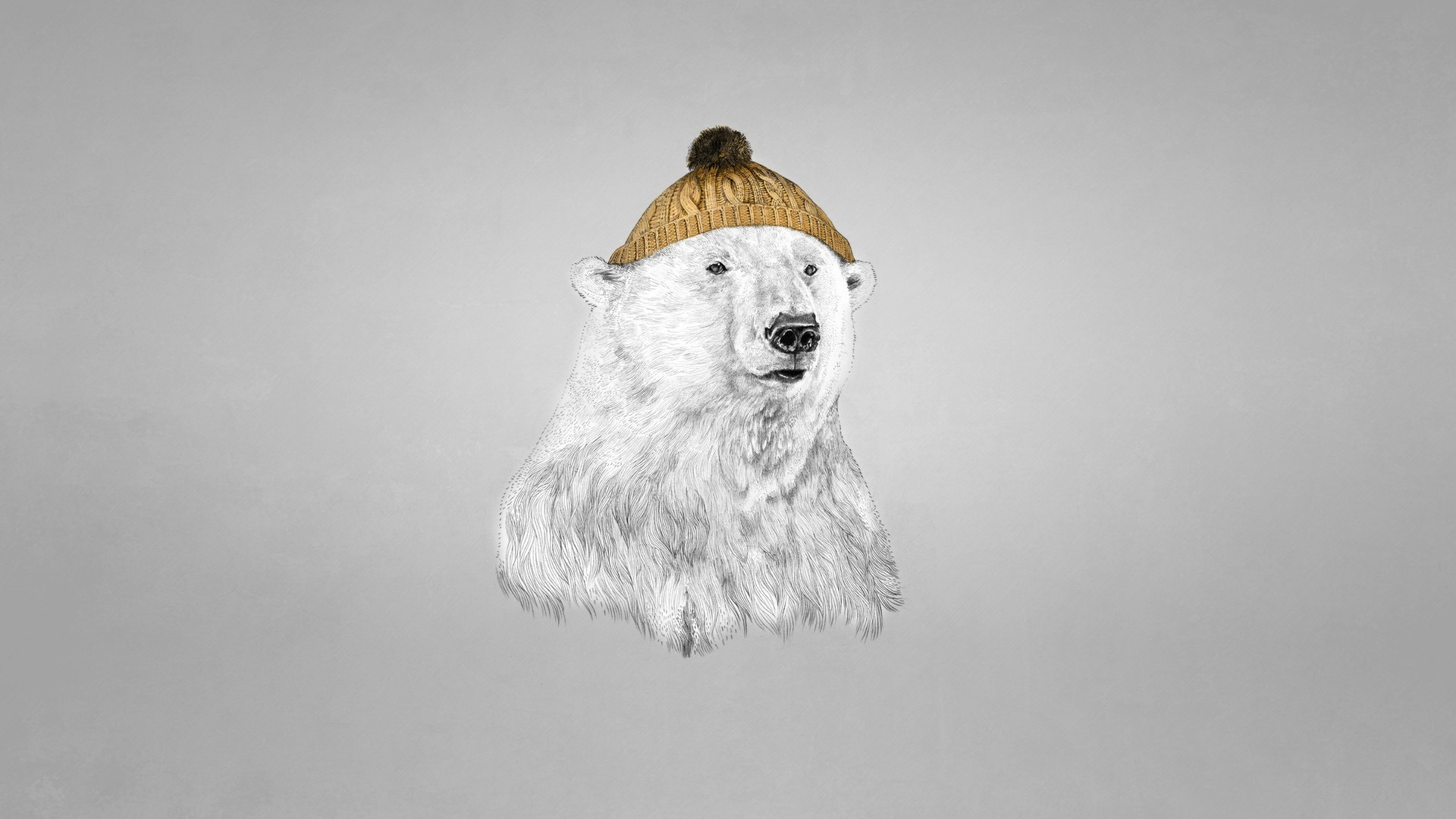 Белый медведь в шапке - 1920x1080