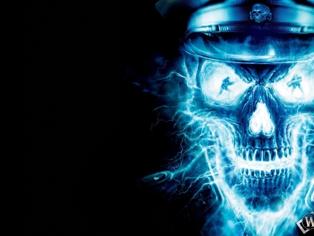 Неоновый череп в фуражке