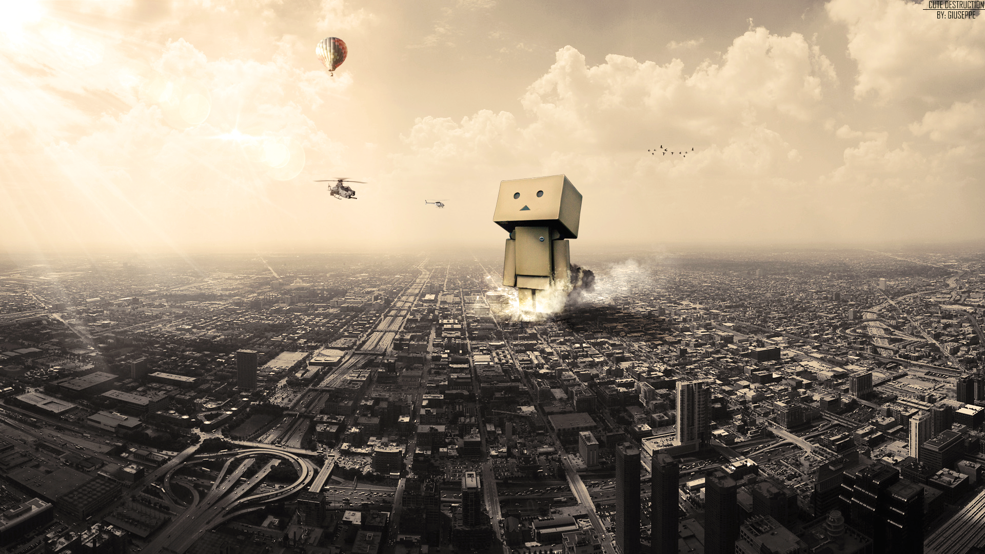 Обои: Картонный человек разрушает город